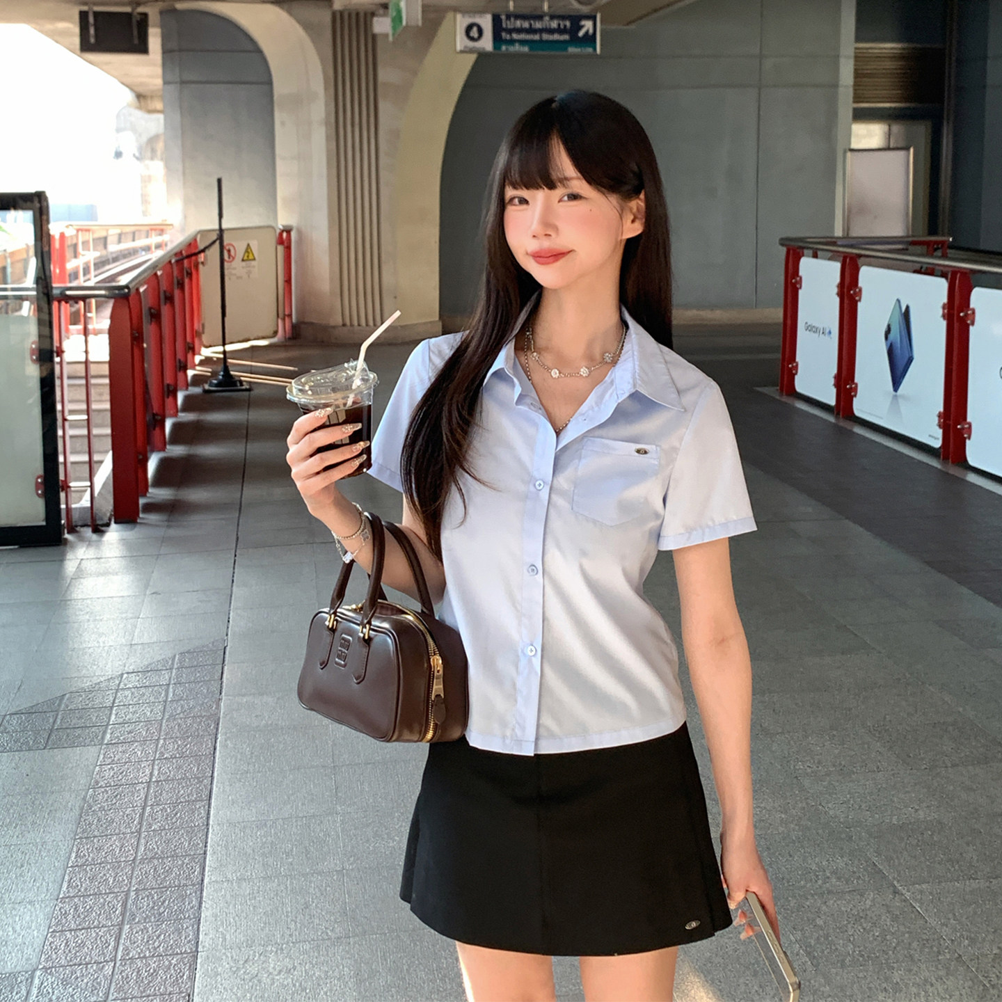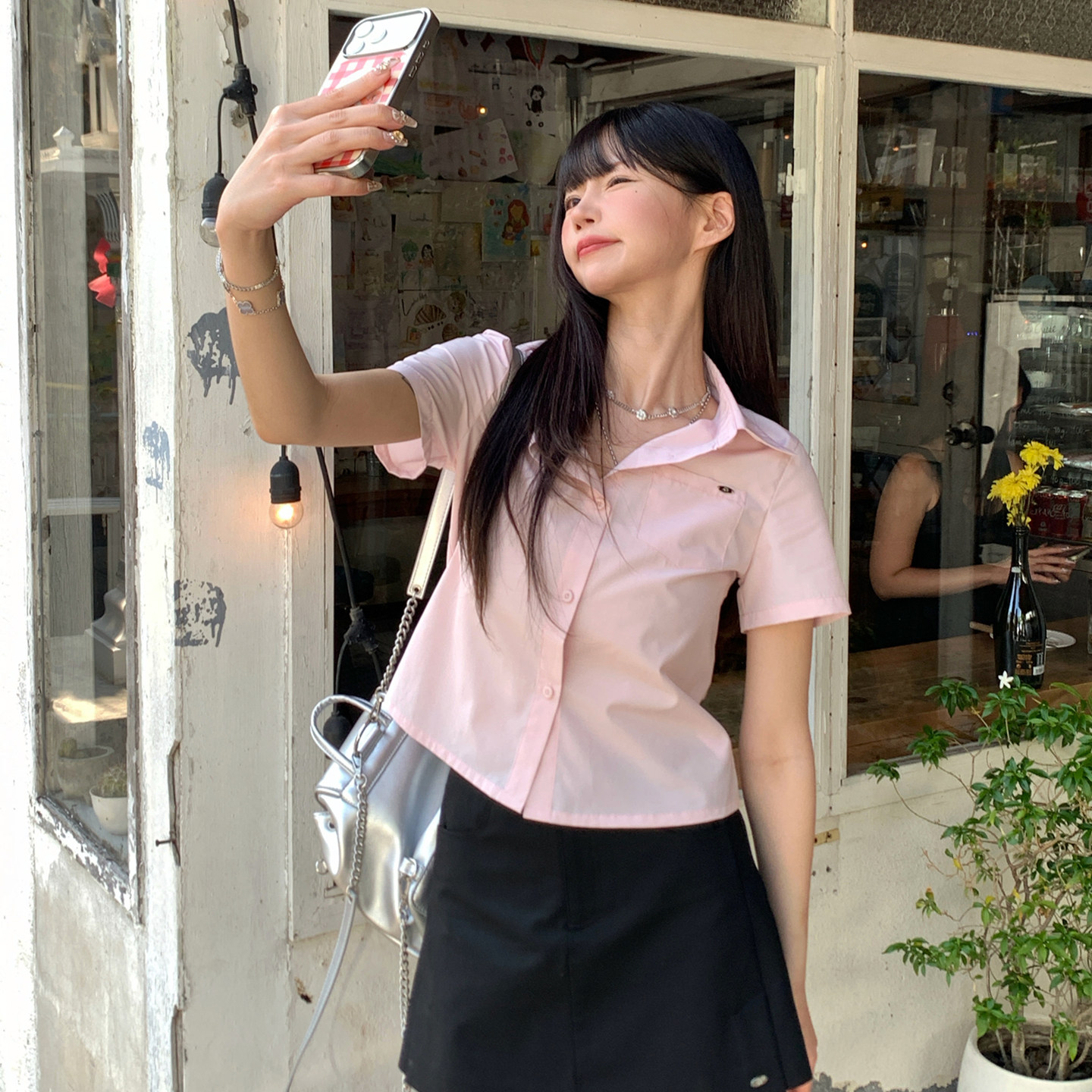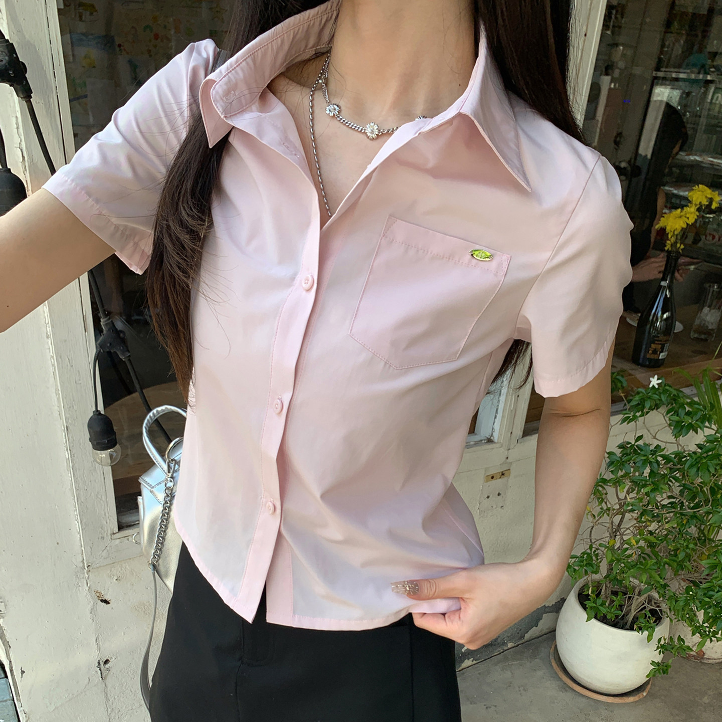 26春夏新款 衬衫 韩系修身 短袖 上衣女生 简约气质小版 ANA宝藏珍妮