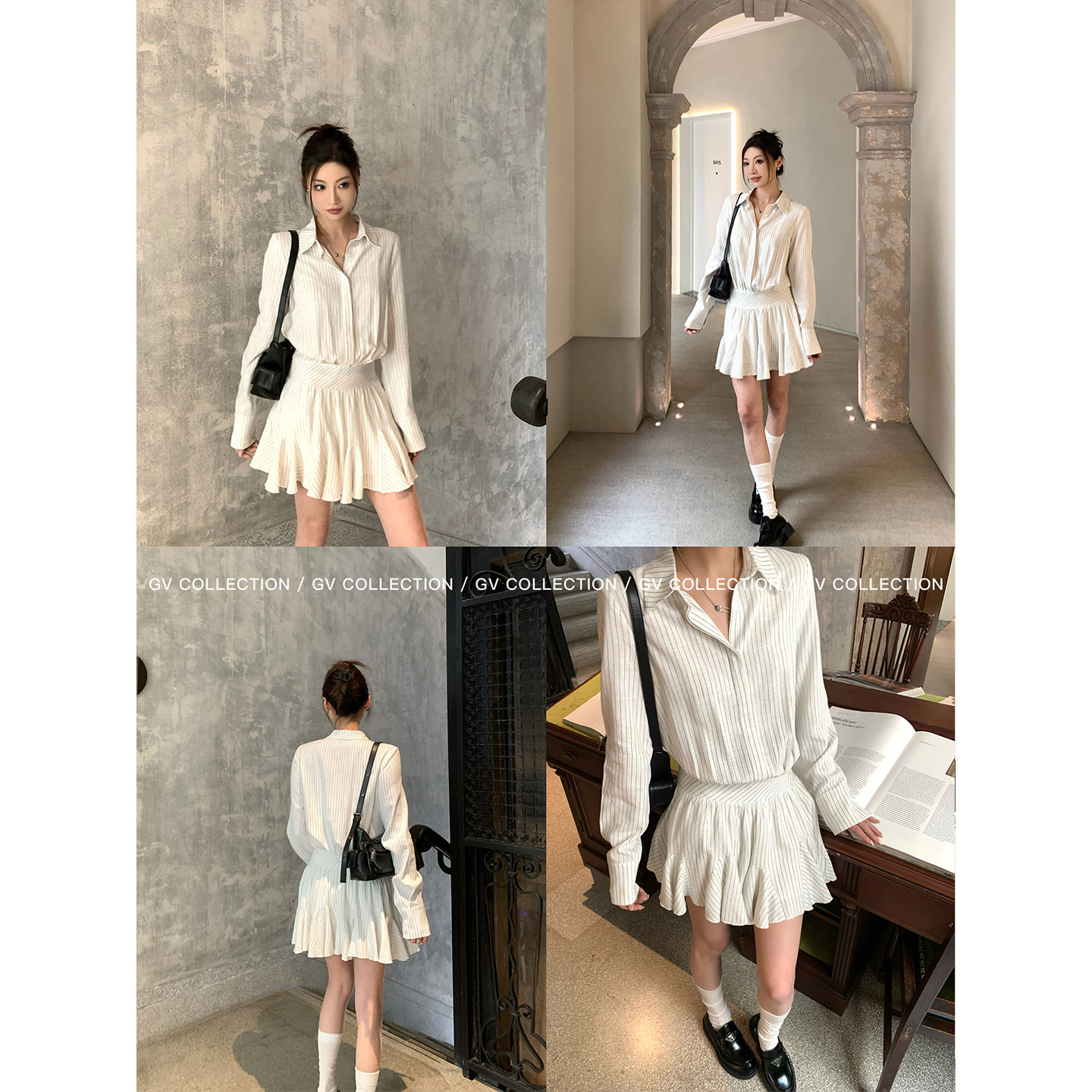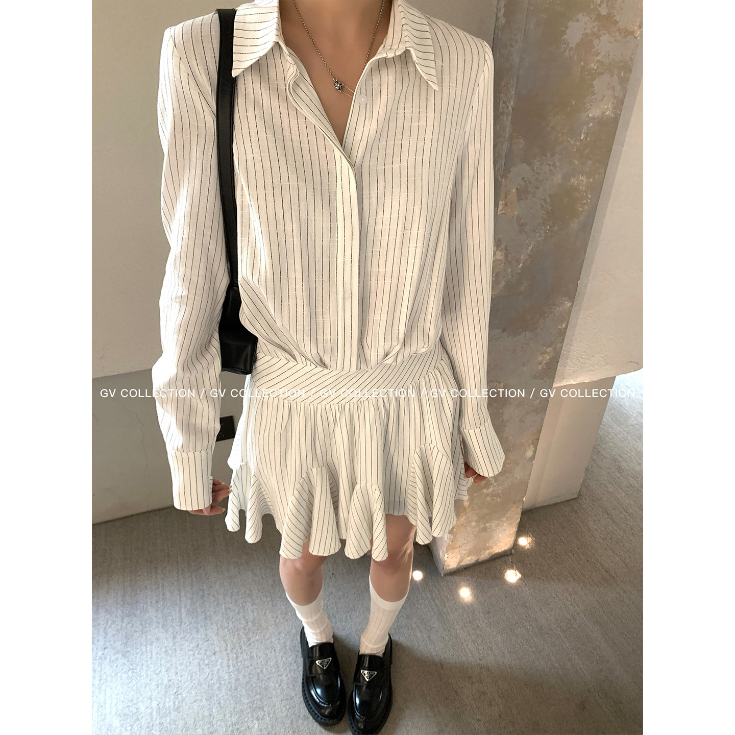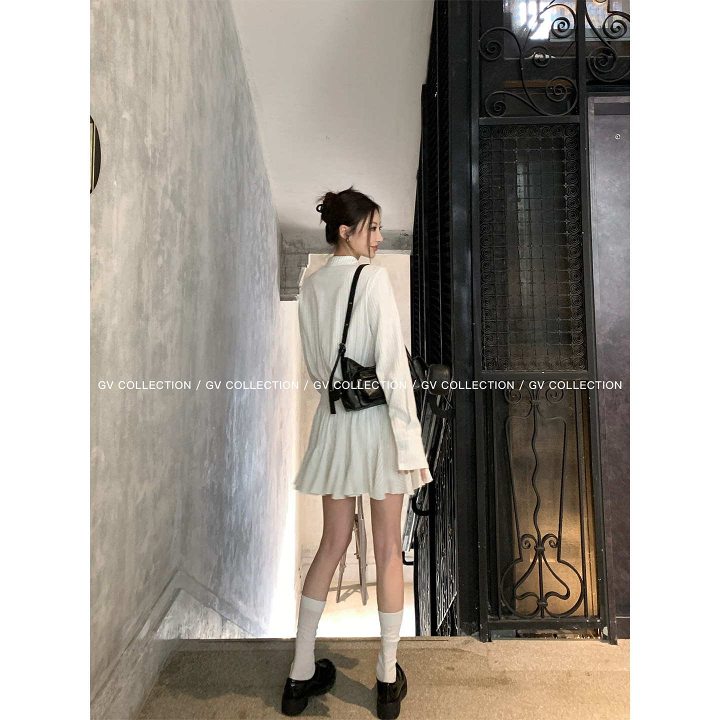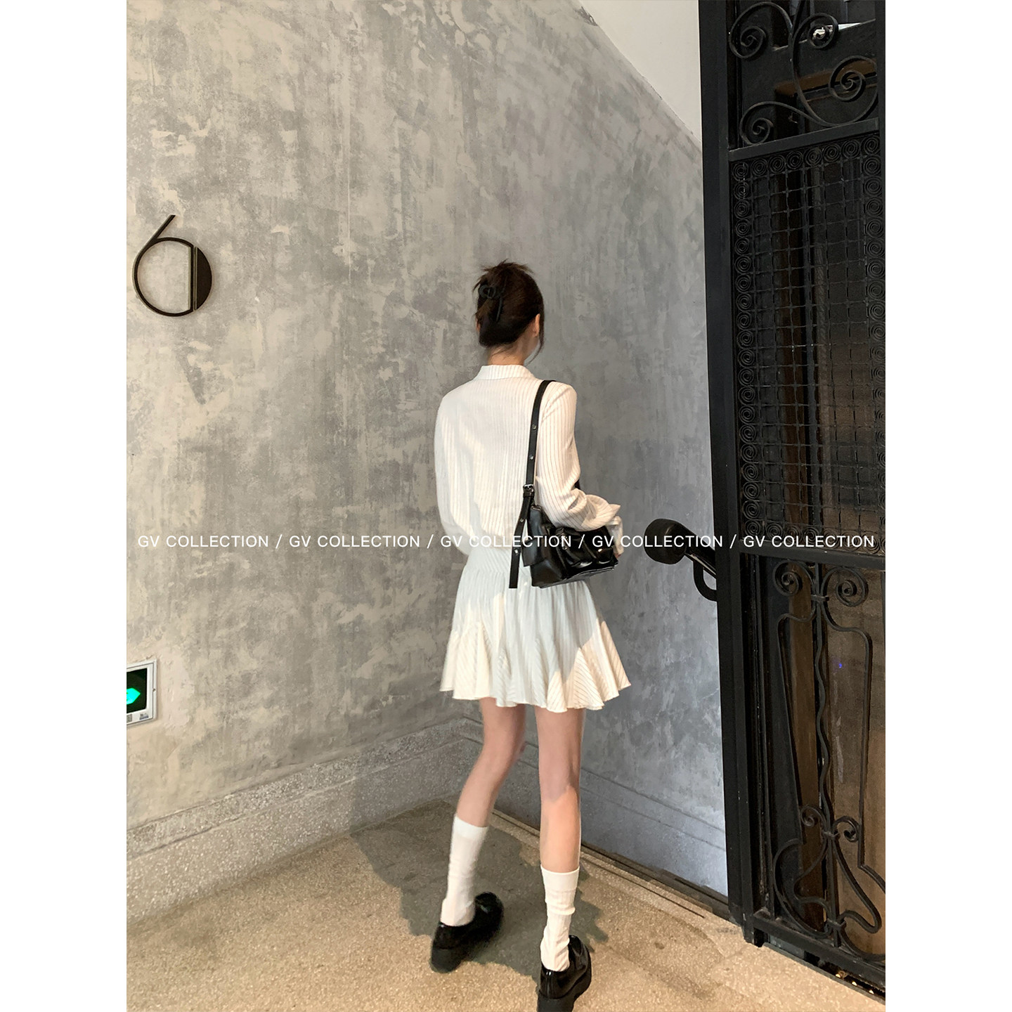 裙子女气质 polo领宽腰百褶连衣裙春夏新款 GV大白哥 miu系棉麻