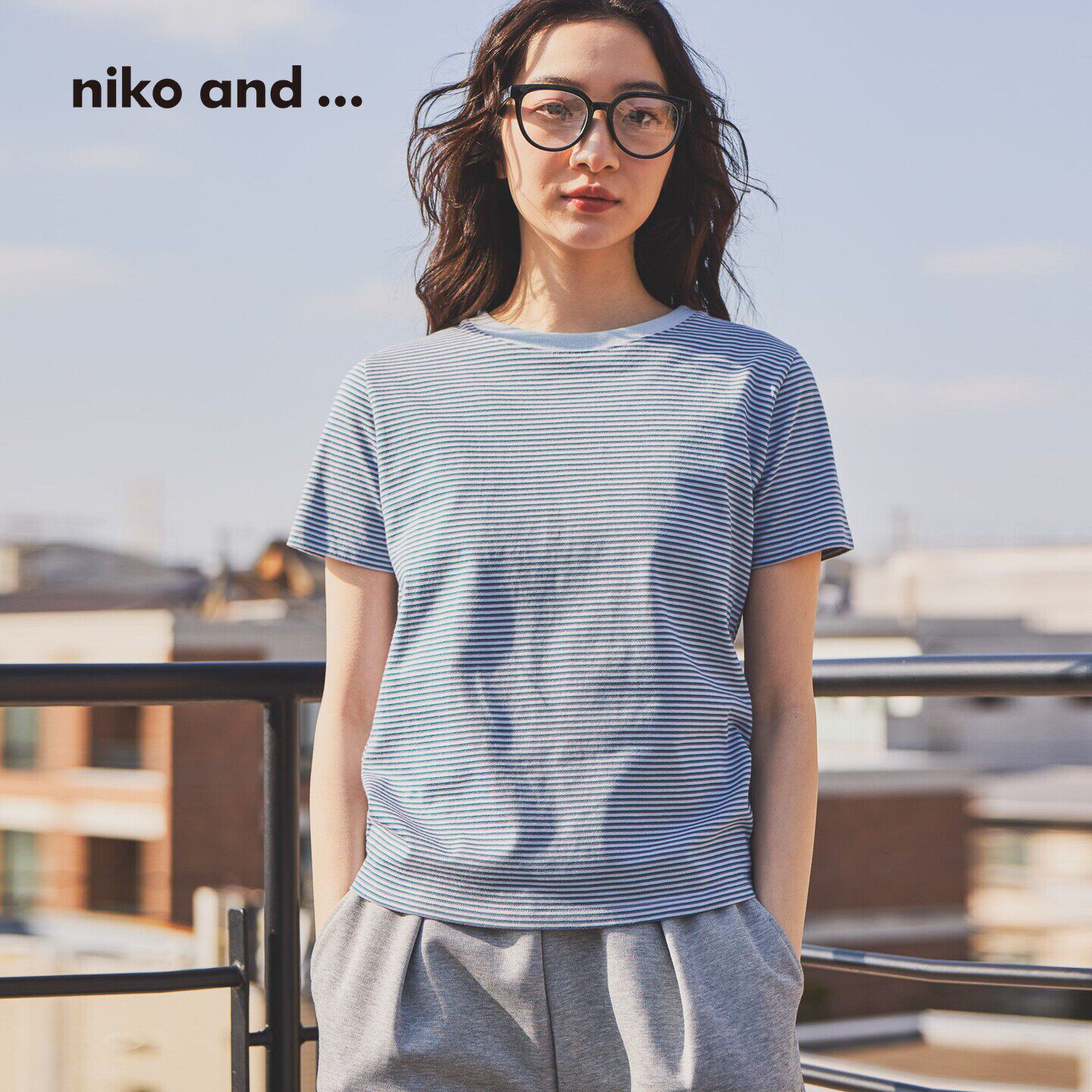条纹棉质圆领短袖 niko 新款 ...T恤女2026夏季 上衣621891 and