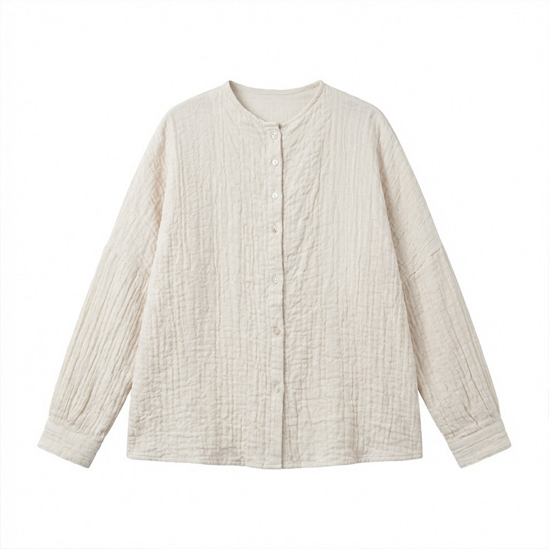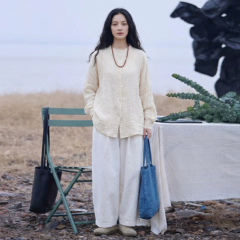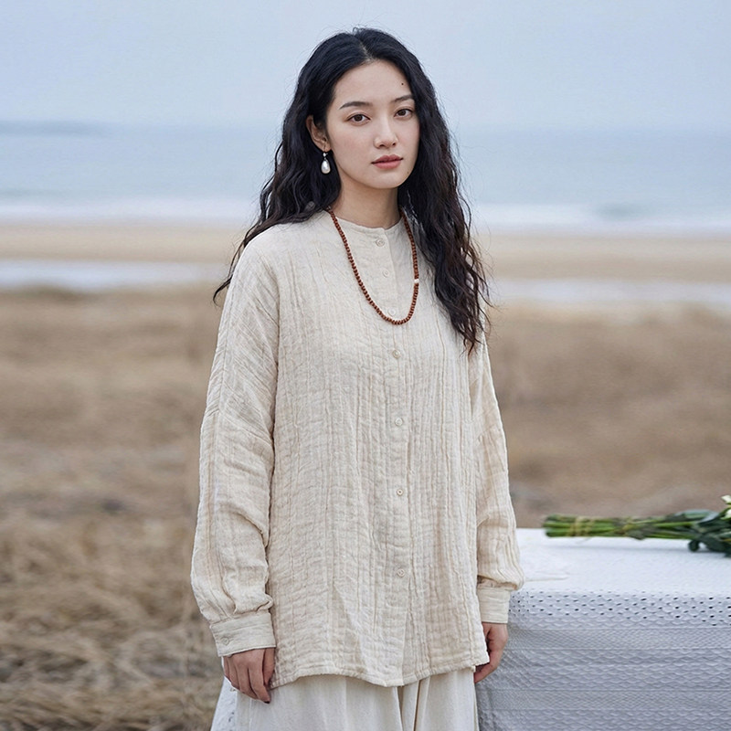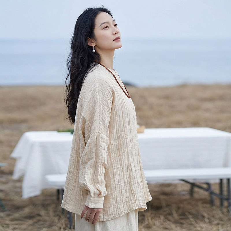 2026春季 女 淡人小众肌理感休闲风衬衣 衬衫 知笔墨米白色皱感长袖