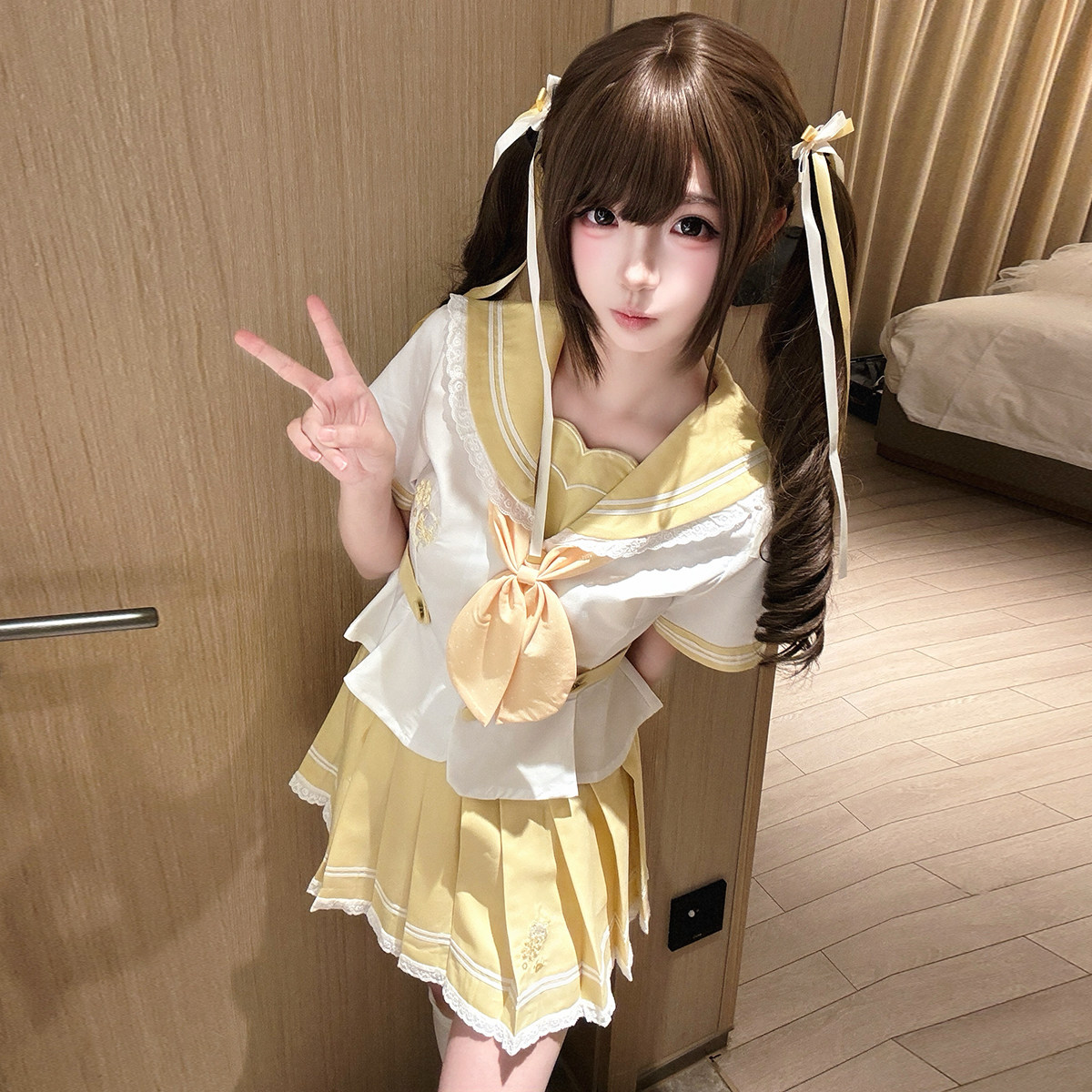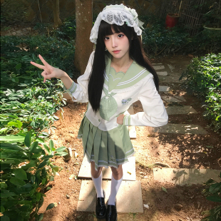 原创收腰学院风百褶短裙套装 蕾丝花边jk制服水手服正版 四叶草