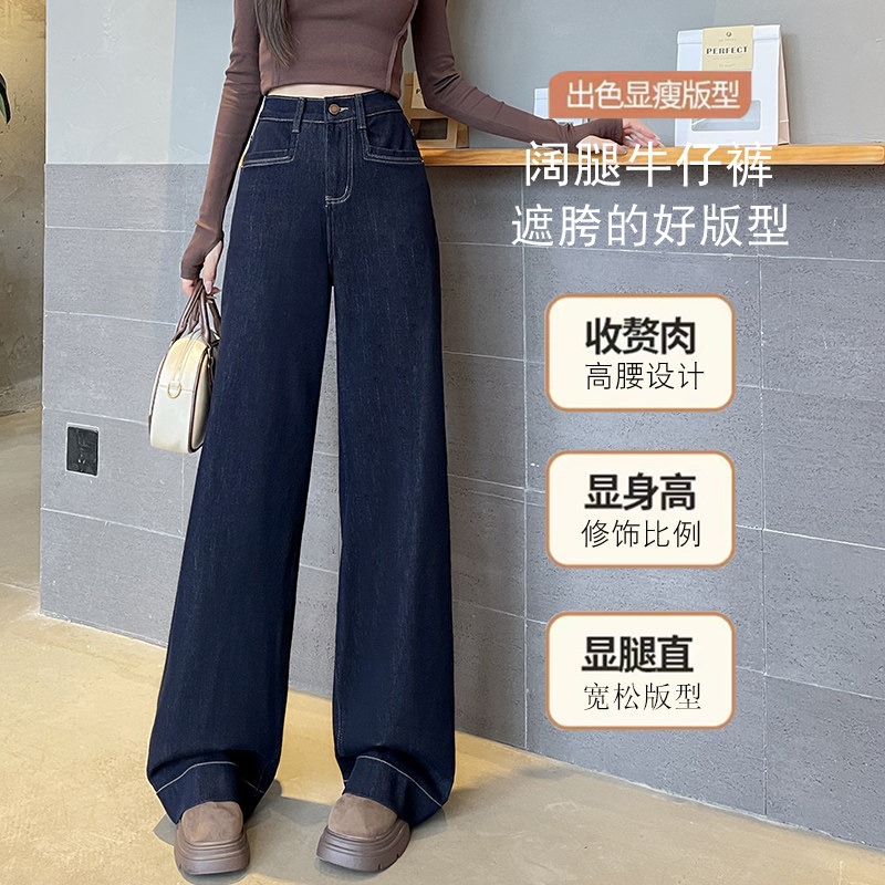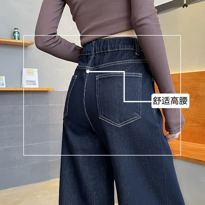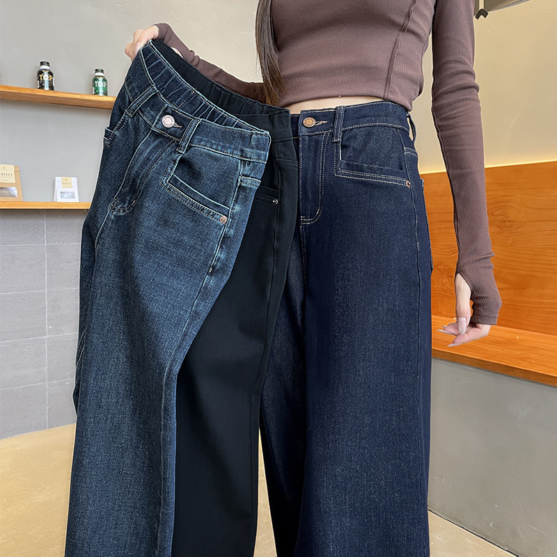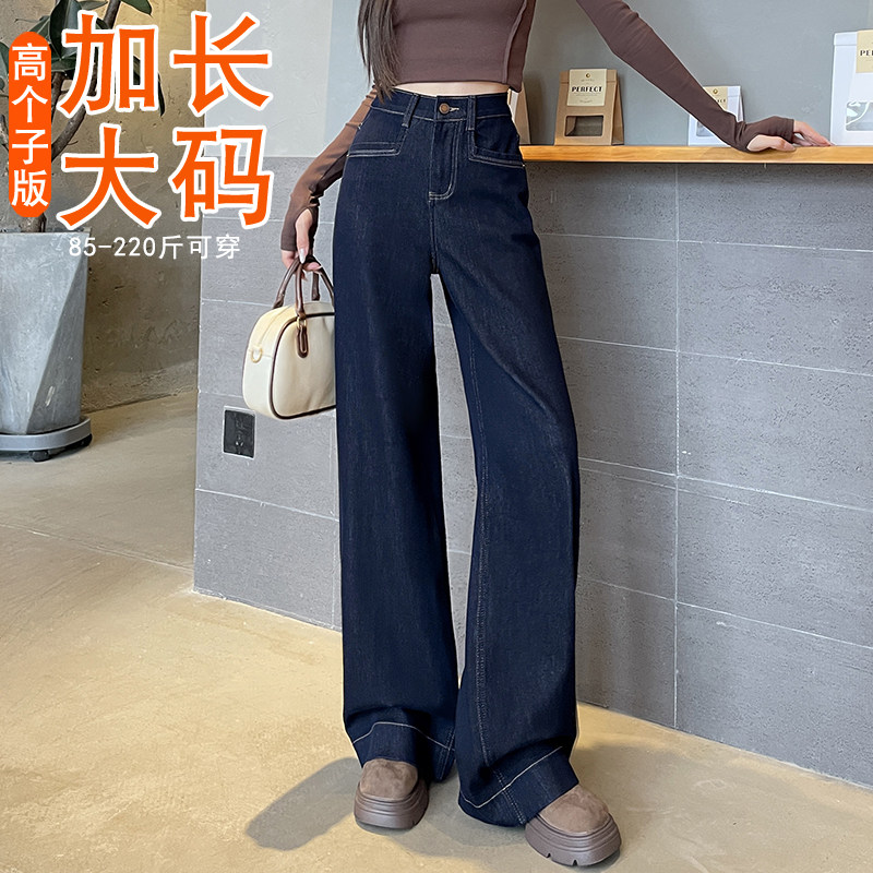 宽松直筒喇叭裤 四面弹高腰大码 女加长加绒阔腿裤 175高个子牛仔裤