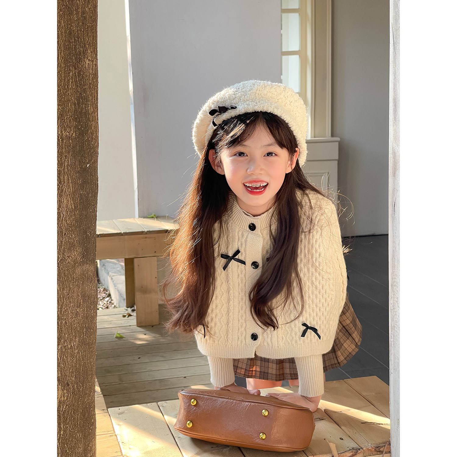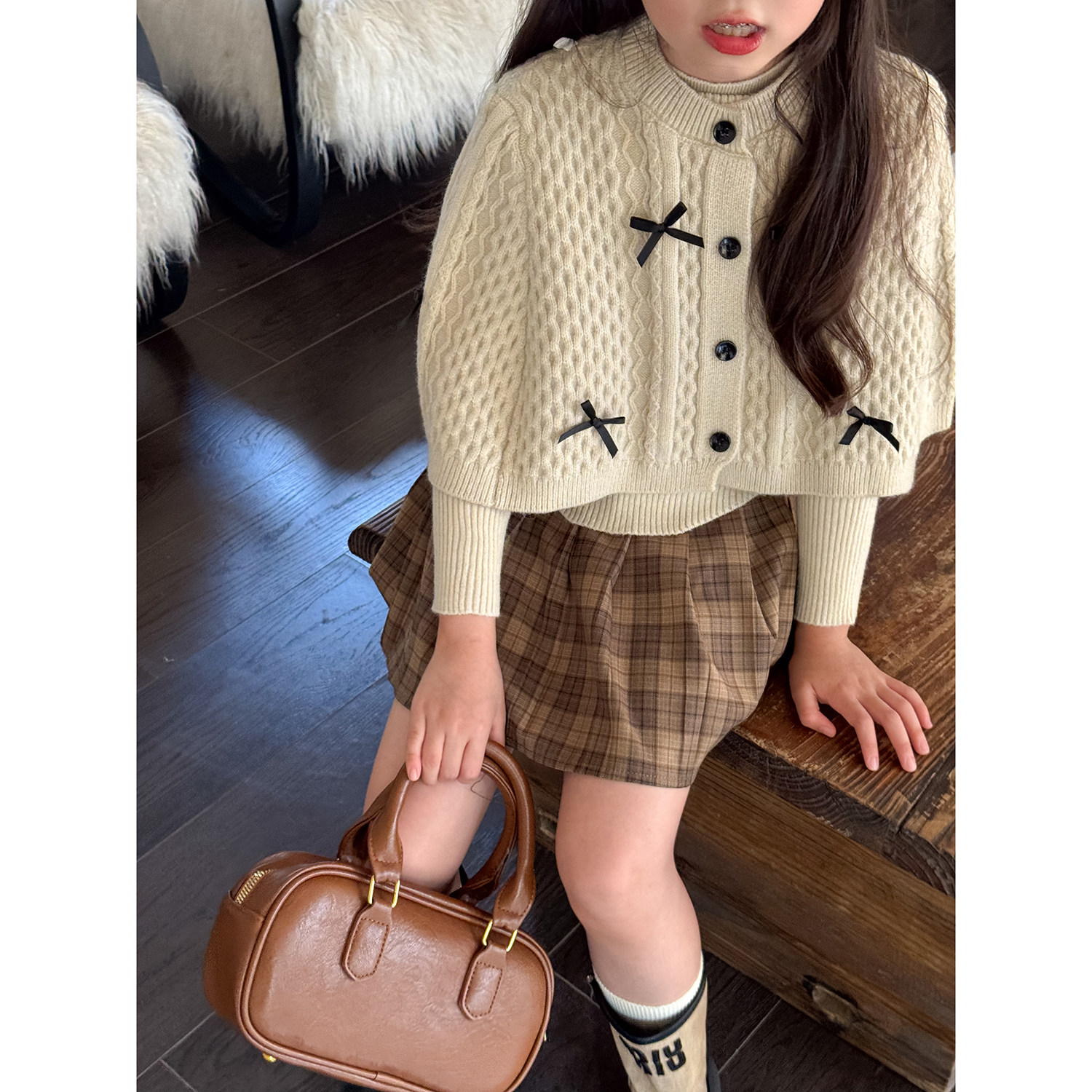 复古蝴蝶结毛衣斗篷针织长袖 女童秋季 两件套 CHILD NONO