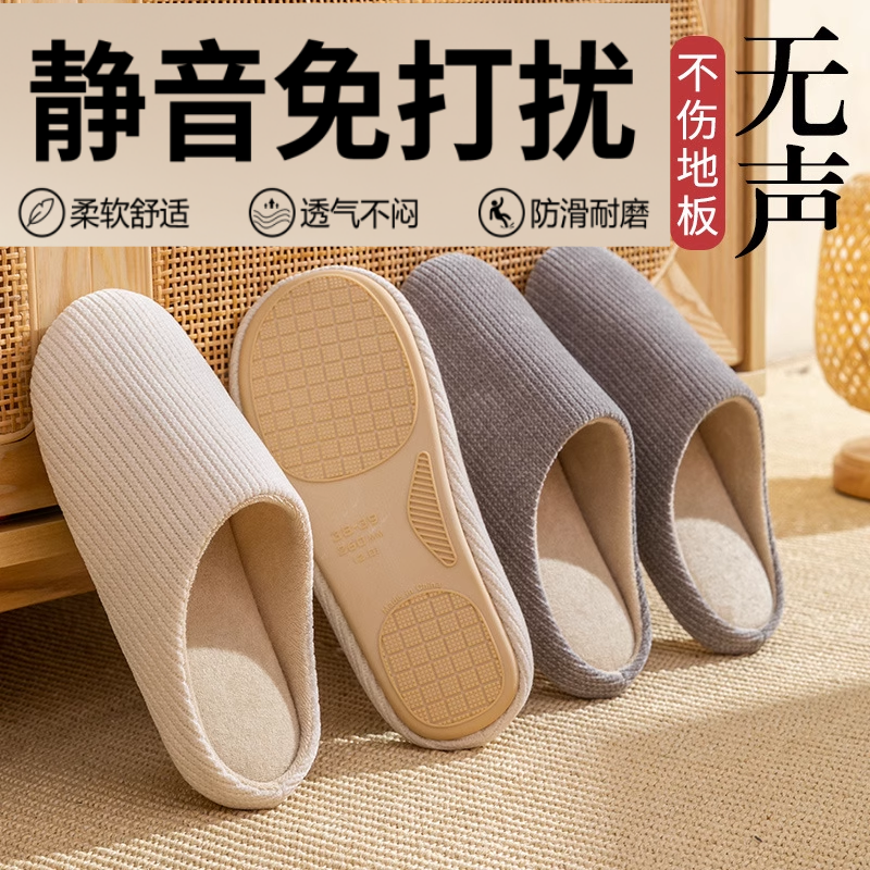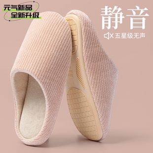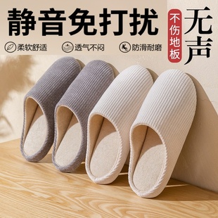 无声静音拖鞋 秋季 女款 木地板软底防滑透气棉拖鞋 室内家居四季 日式