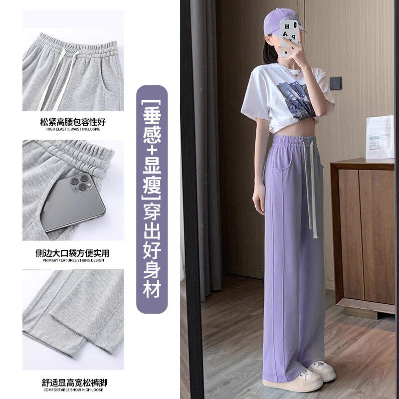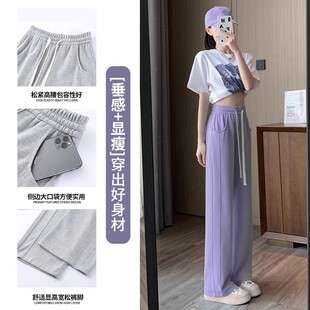 胖mm宽松显瘦梨形身材阔腿裤 深灰色糯米休闲裤 大码 新款 女直筒春季