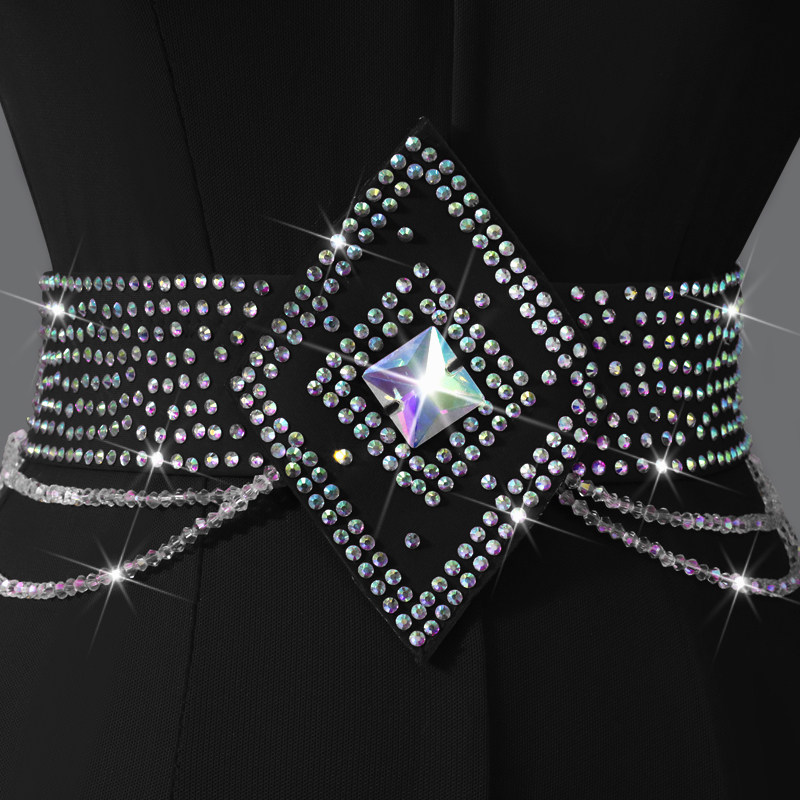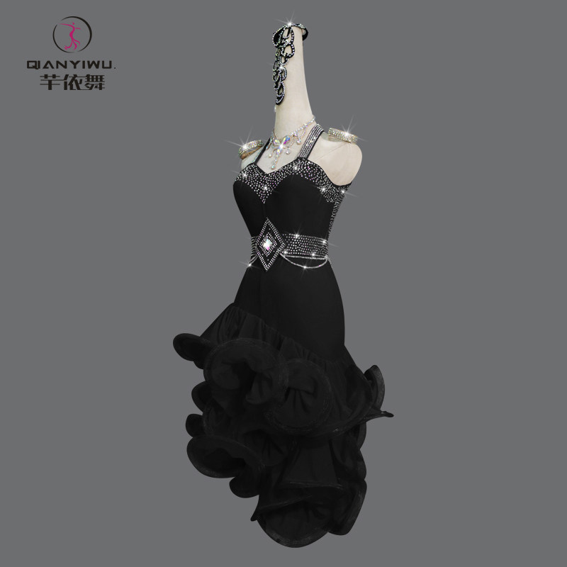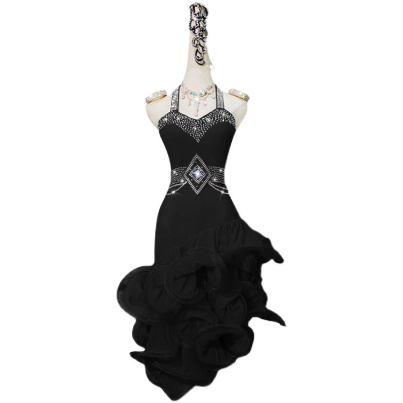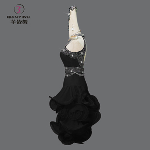 标准艺考儿童花服 专业舞蹈表B演出比赛服装 新款 黑色拉丁舞裙女式