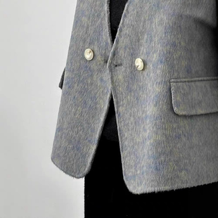 媛子家大码 胖mm宽松灰色通勤常规百搭遮肉纯色毛呢拉链外套女 冬季