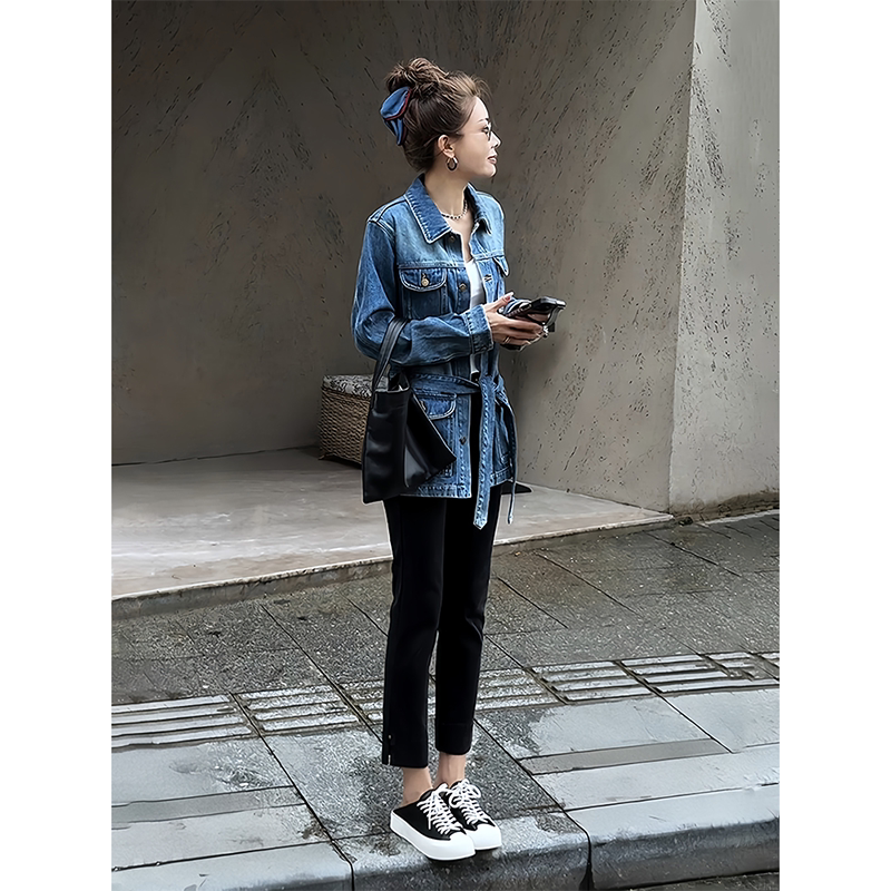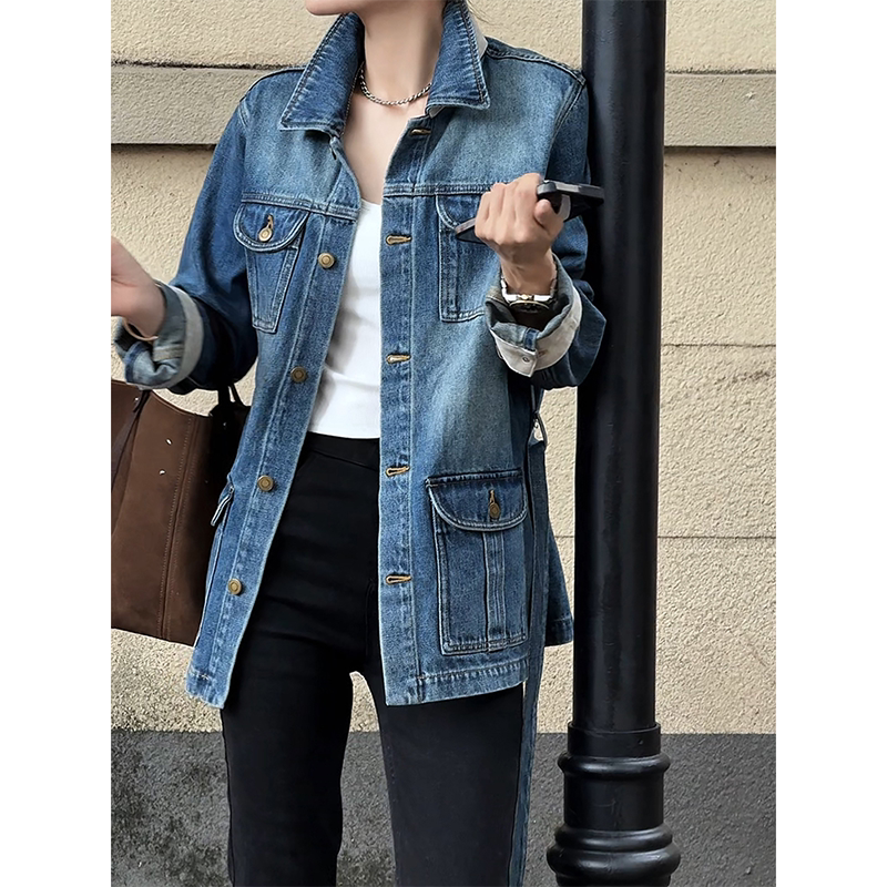 牛仔外套系腰正肩显瘦上衣女 复古设计感口袋工装 可可欢姐春季 新款
