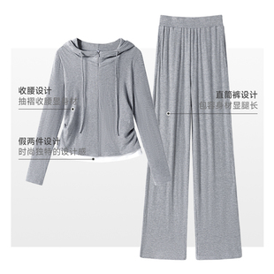 小个子休闲运动穿搭两件套H 新款 班尼路黑色假两件套装 女2025秋季