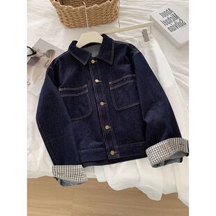 宽松短款 2025新款 休闲夹克上衣潮 子拼接牛仔外套女秋季 复古港风格