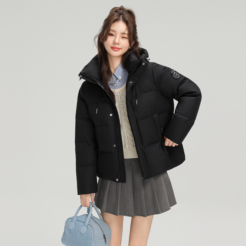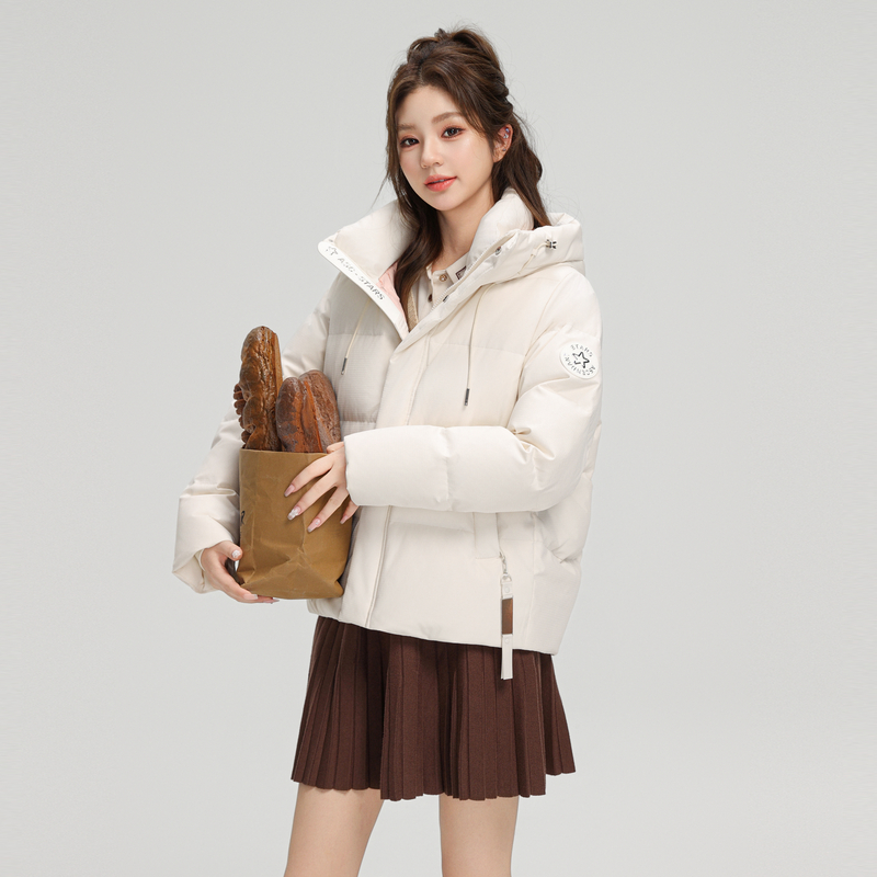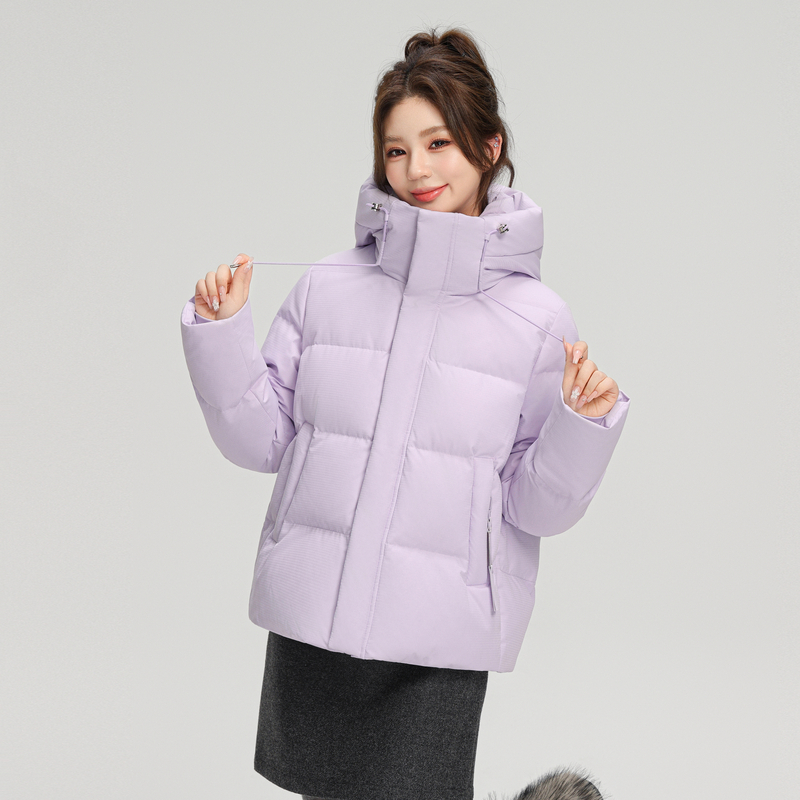 雪中飞2025冬新款 马卡龙色连帽面包服羽绒服廓形显瘦保暖 短款