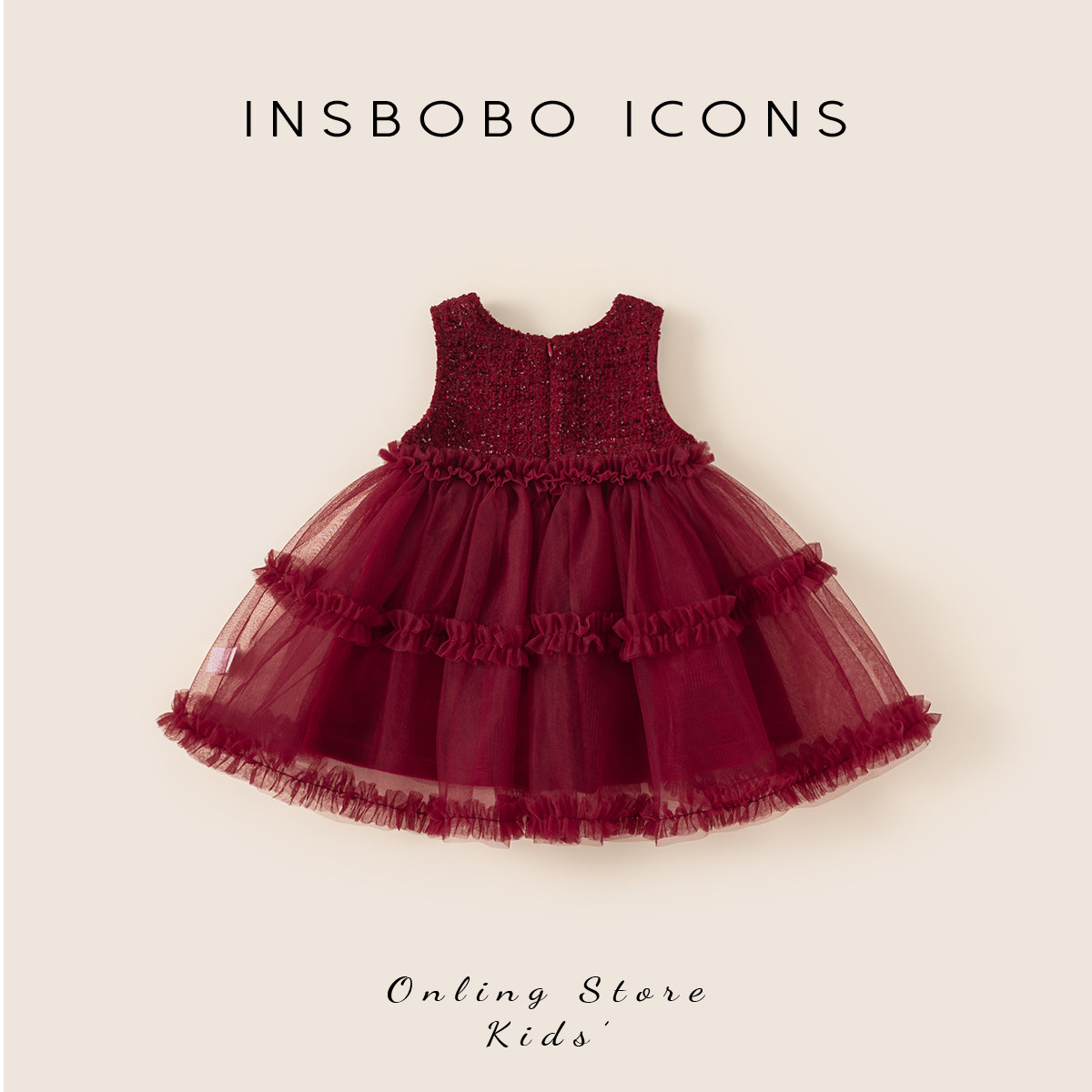宝诗黎网纱印花拼接亮丝连衣裙2026新款 百搭中长裙 遮肉A字裙春季