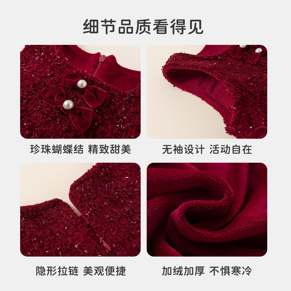 新年穿搭露肩针织短裙子 甜欲风红色连衣裙女冬季 织物猪 圣诞初雪