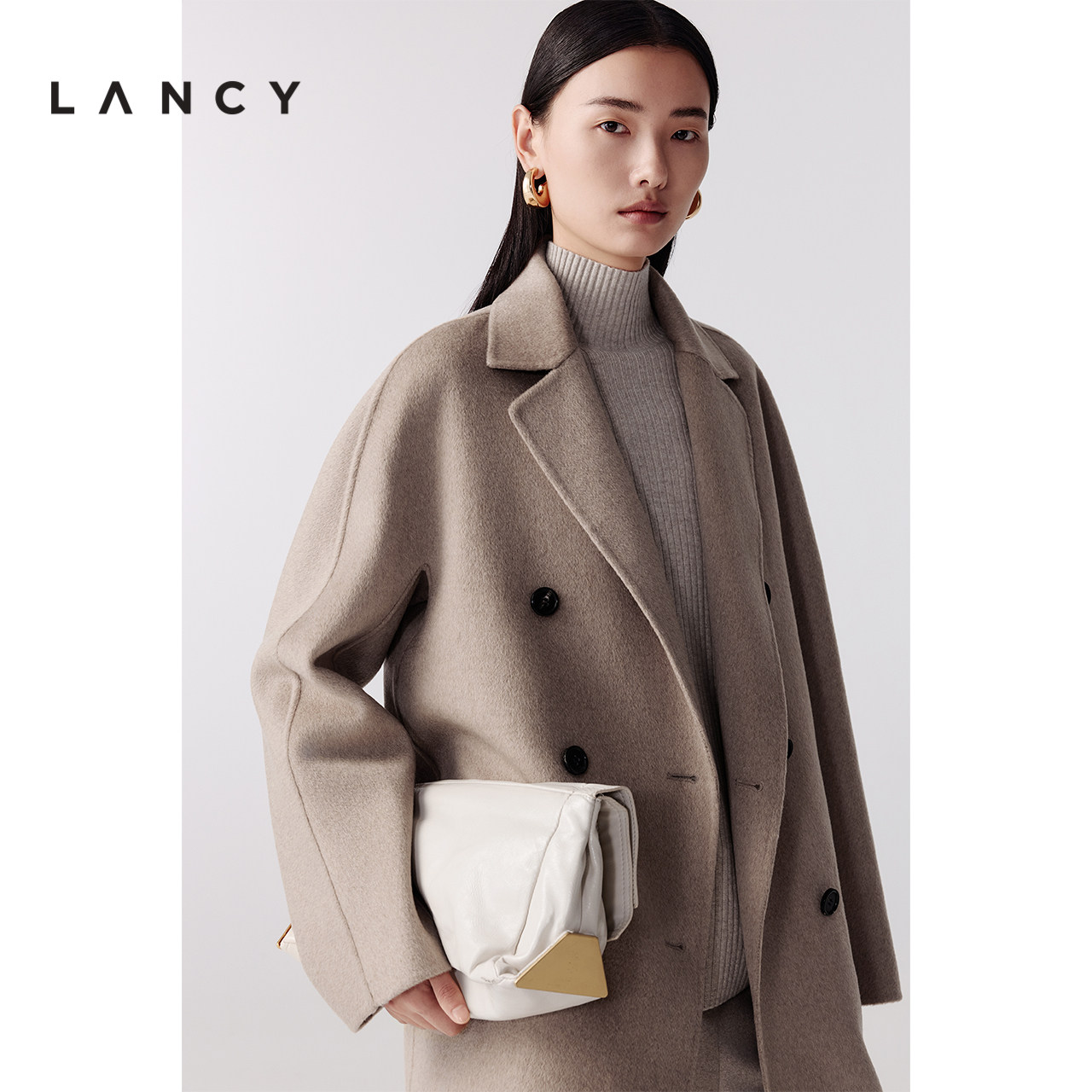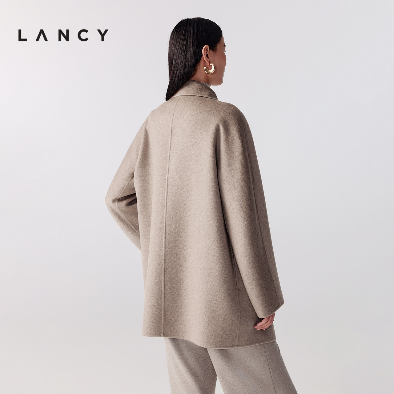 气质双面呢翻领中长款 朗姿2025冬新款 LANCY 大衣外套女 纯羊绒