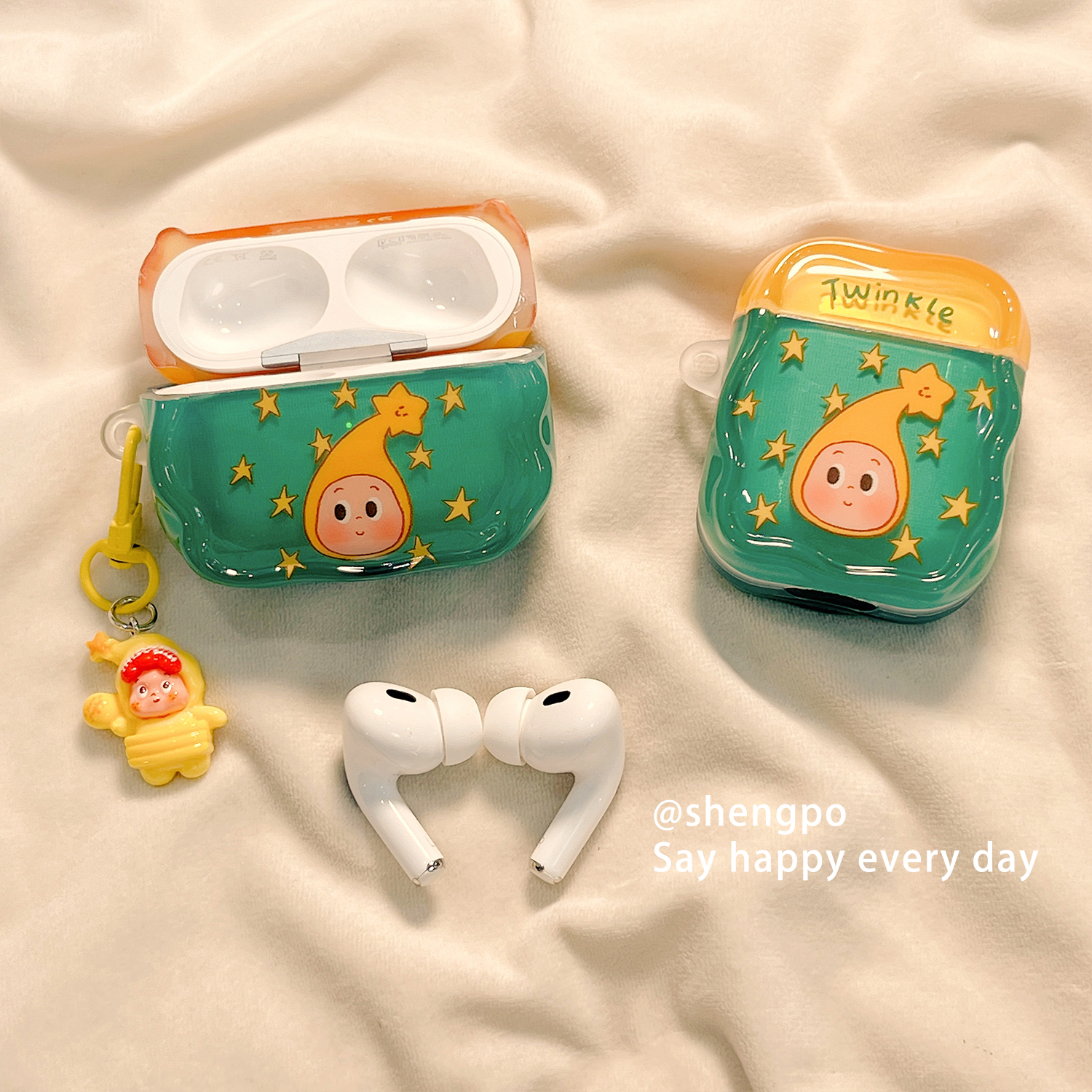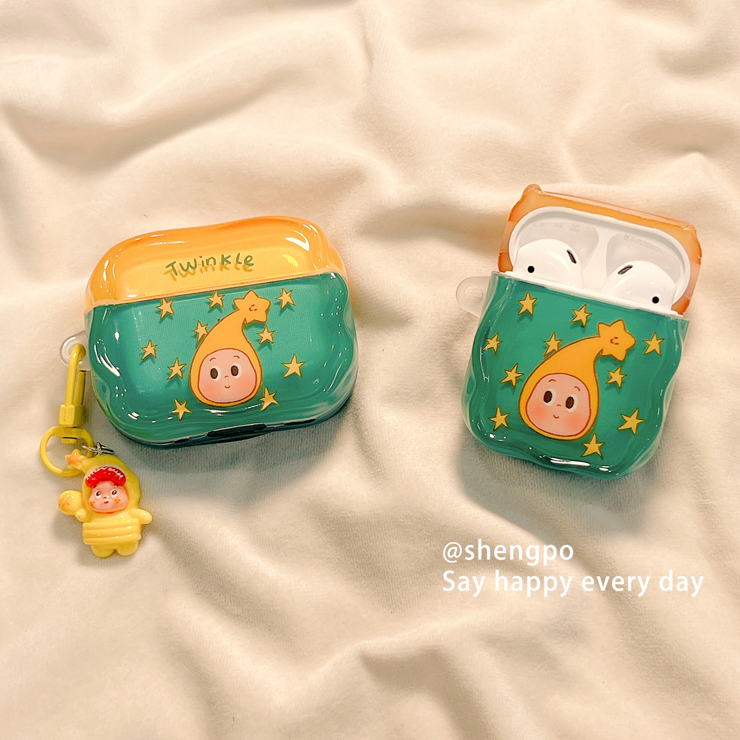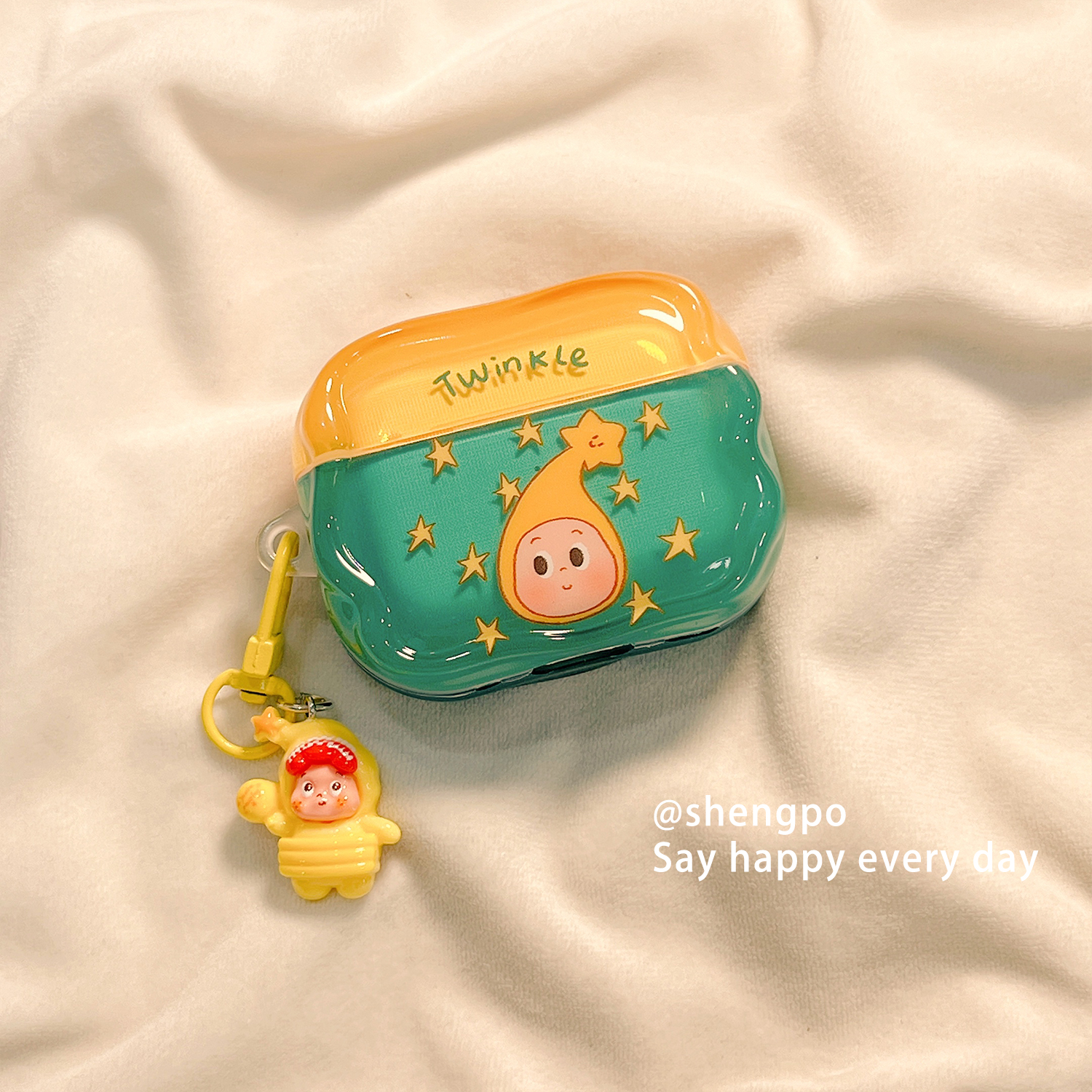 可爱网红卡通星星人适用airpodspro3苹果无线蓝牙耳机壳airpods4新款 2代女超火防摔三代pro2保护套 airpods1