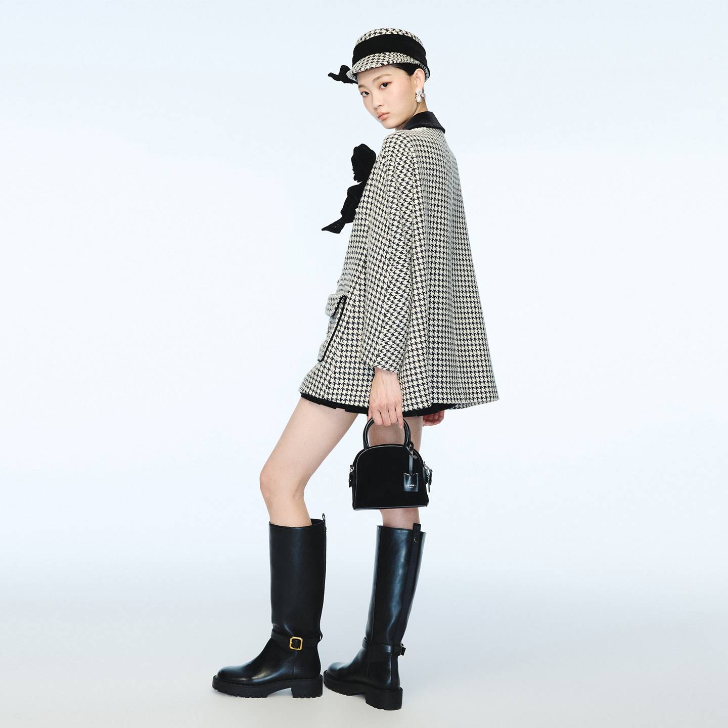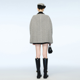 lefame拉飞姆春秋千鸟格大衣羊毛毛呢外套女 Angelababy同款