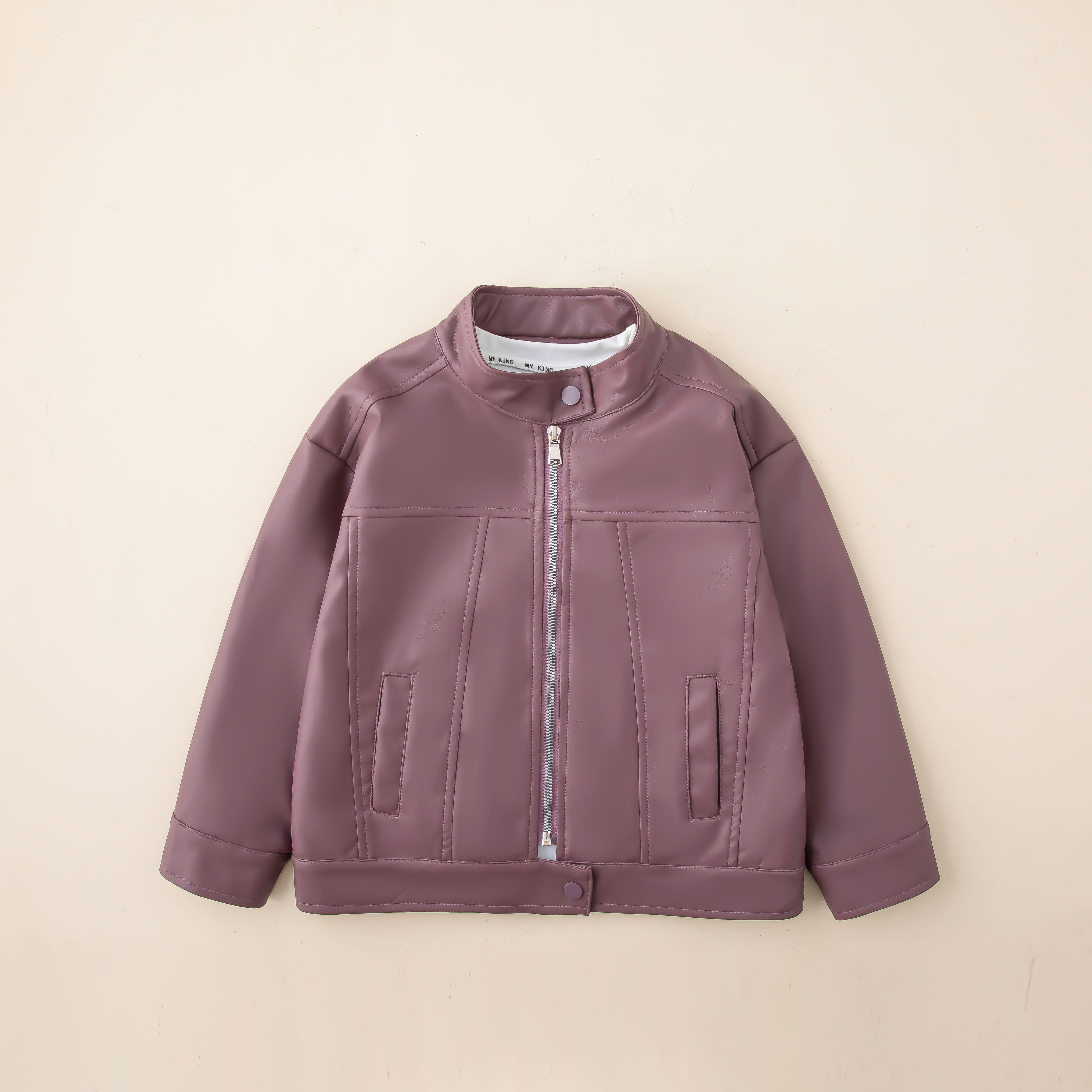 夹克上衣垫肩外套女春款 小众时髦两色皮衣短款 胡桃手信 aaaaxbbb