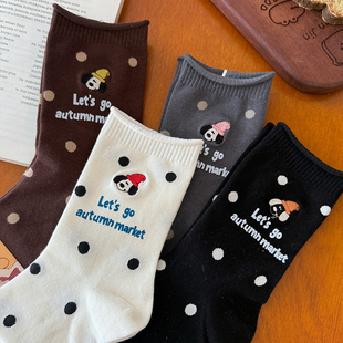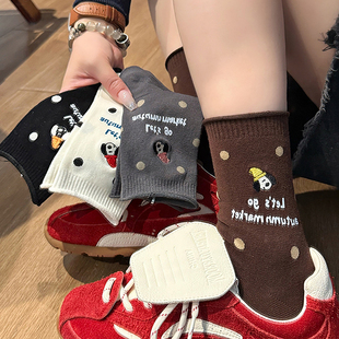 5双袜子男女纯棉防臭中筒袜情侣刺绣学生百搭ins高帮运动长筒袜潮