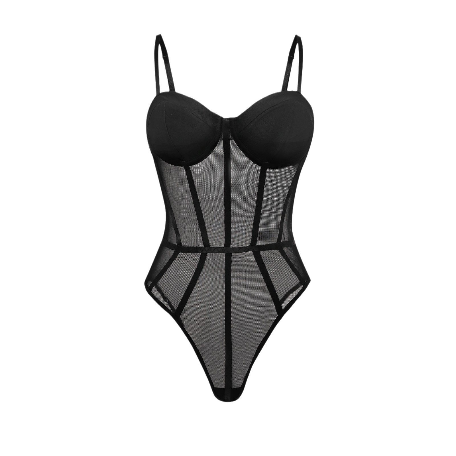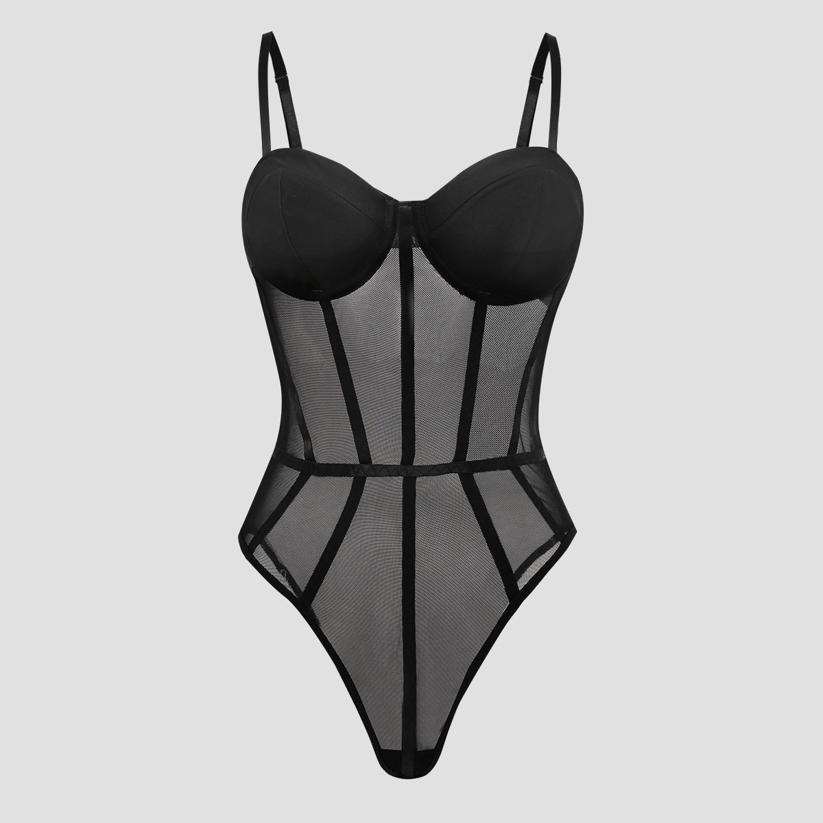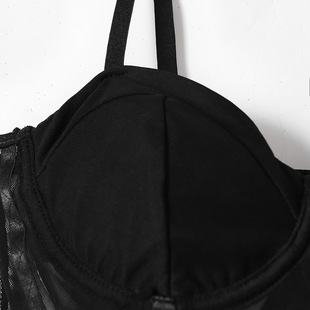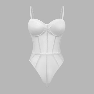 网红欧美跨境外贸塑身吊带网纱透视简约辣妹ins风钢圈聚拢连体衣
