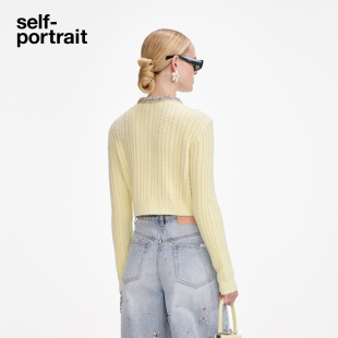 奶油黄钻饰羊毛混纺针织毛衫 2025秋冬新款 外套上衣 portrait self
