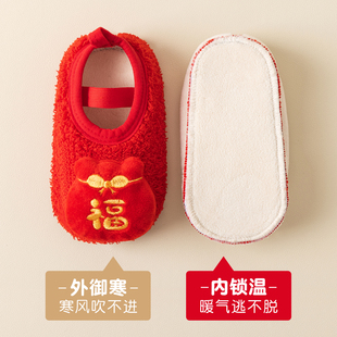 地板鞋 可爱萌冬季 红色百天周岁过年摆酒席宝宝软底袜鞋 婴儿步前鞋