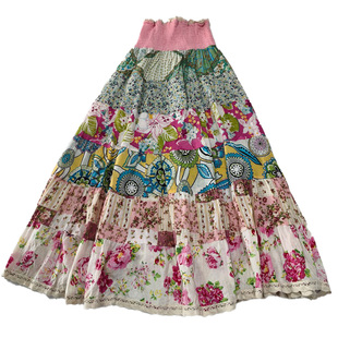 胖mm重工网纱刺绣拼接蕾丝不规则蛋糕裙 大码 白色半身裙长款 女秋季