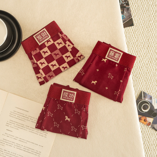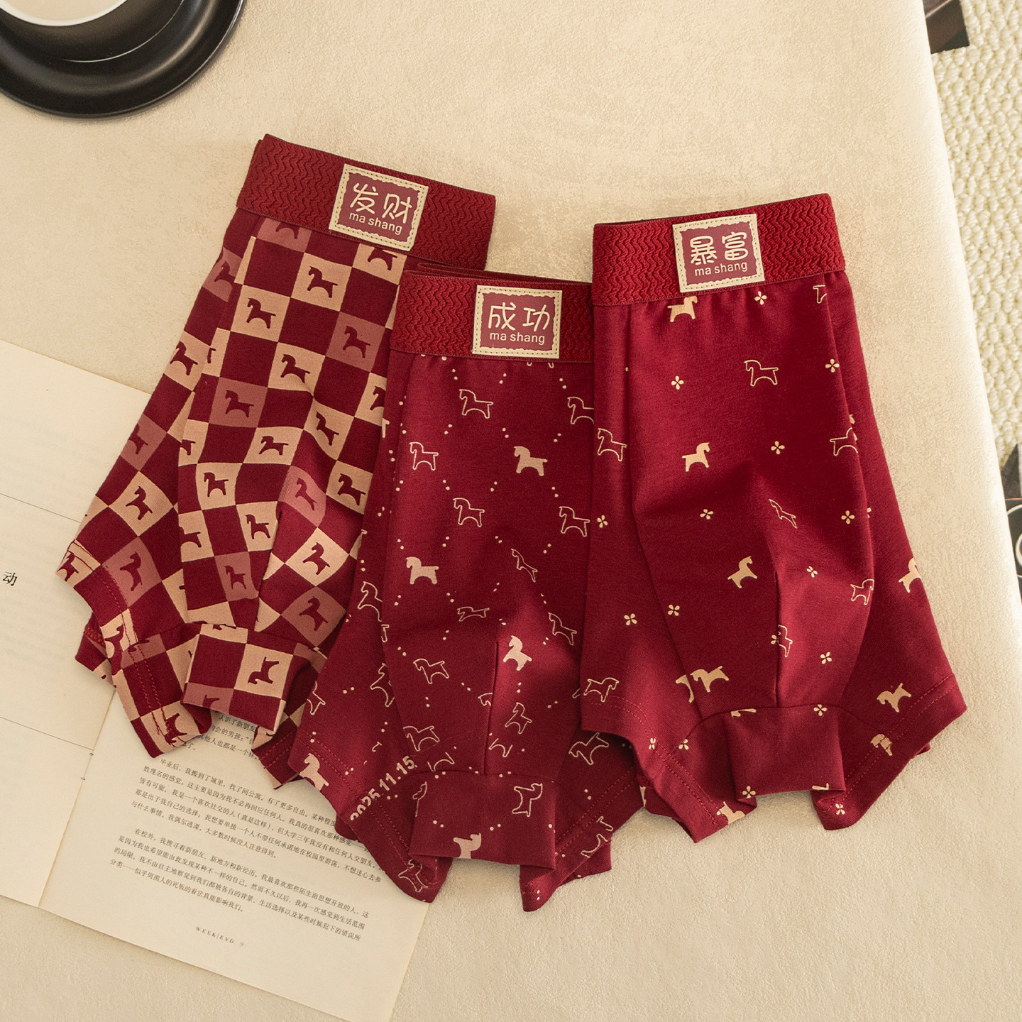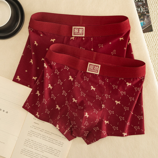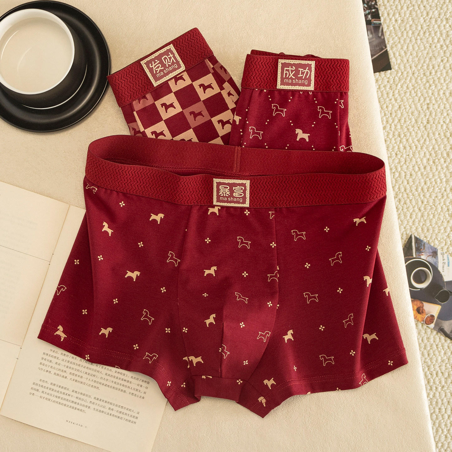 四角短裤 雅鹿本命年内裤 纯棉大红色礼物属马年结婚大码 平角裤 男士