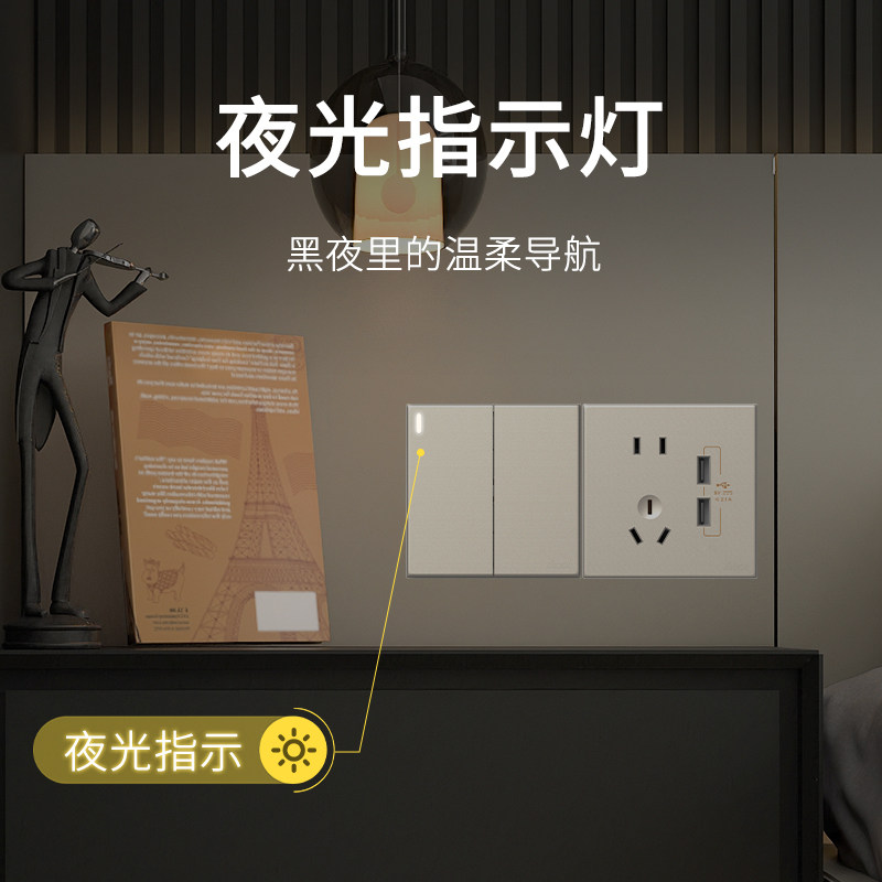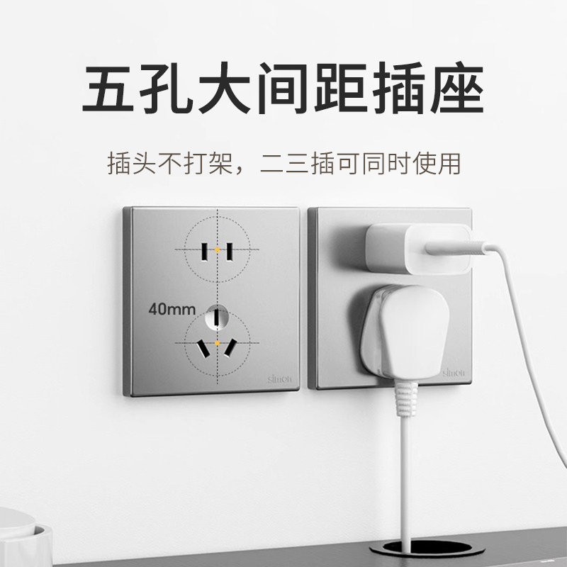 雷士官方开关插座面板86型暗装 一开五孔空调三孔电源插座N25灰色