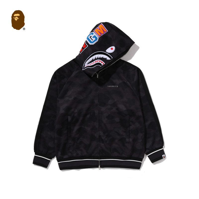 BAPE男装 外套312151P 25年秋冬迷彩图案运动风鲨鱼连帽卫衣开衫