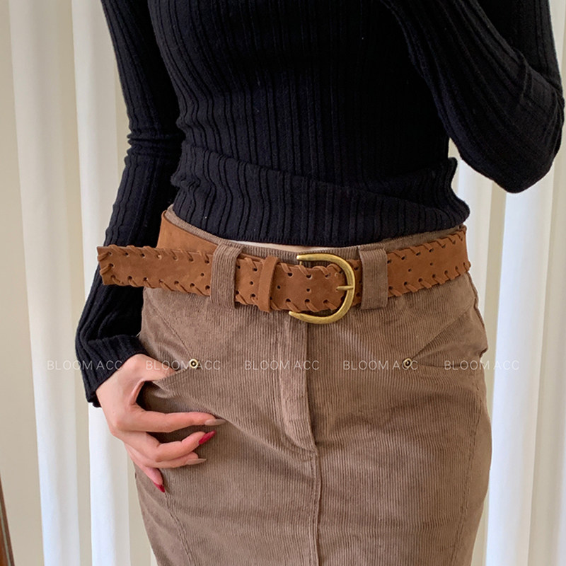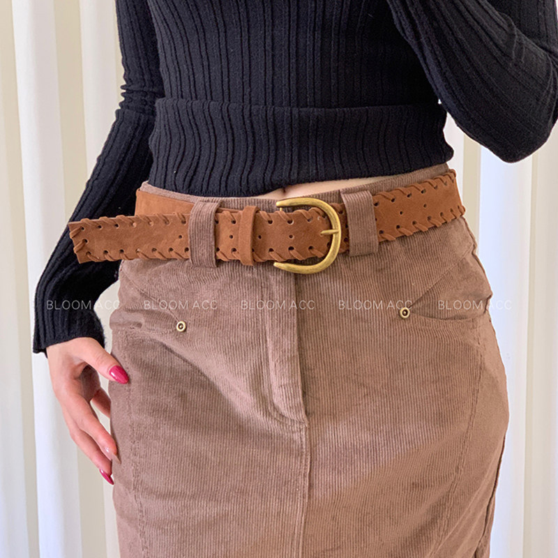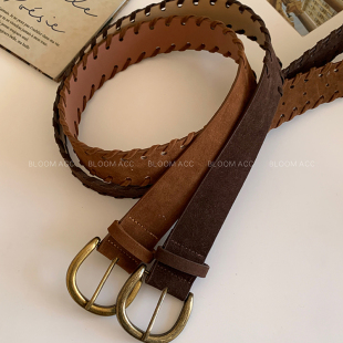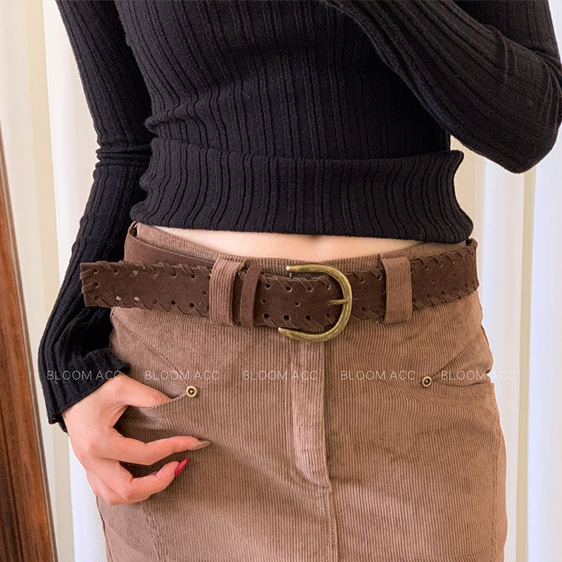 复古磨砂绒面腰带女秋冬新款 带配饰 高级感美拉德色百搭皮革皮带裤