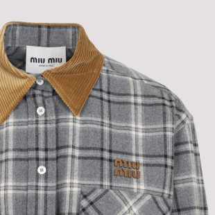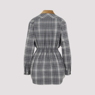 正品 MIU 意大利代购 连衣裙2026早春新款 鉴别 缪缪灰色格子衬衫