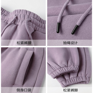 冬 宽松加厚运动裤 少见 色调「烟熏玫瑰」烟灰紫重磅加绒束脚卫裤