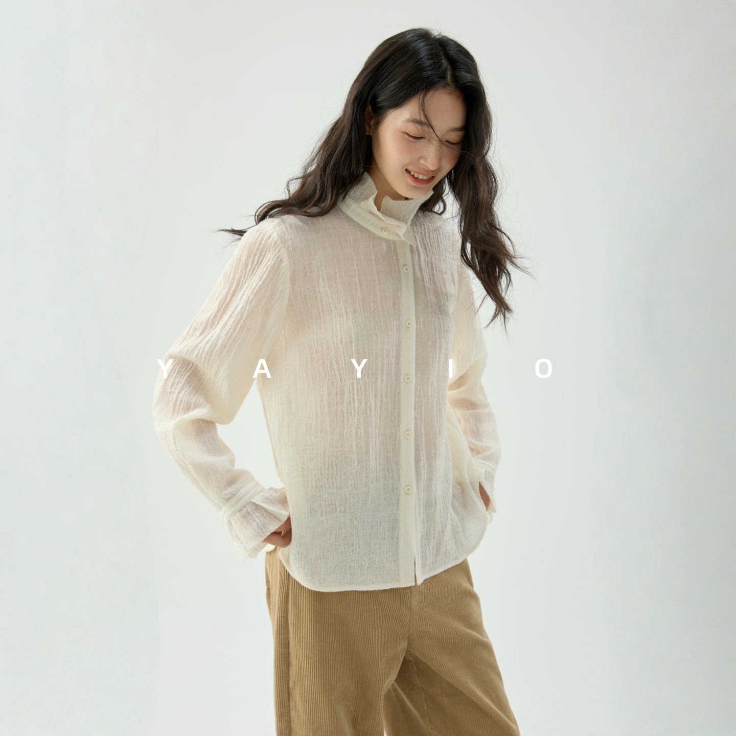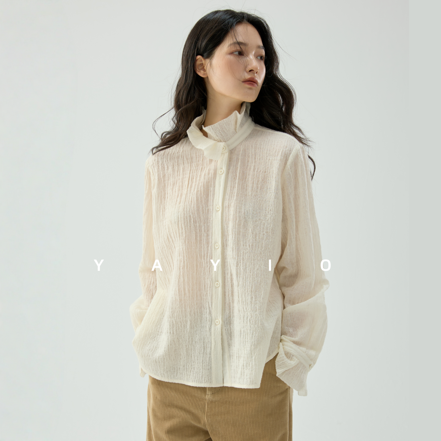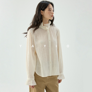 衬衫 莱赛尔混纺慵懒感通勤休闲长袖 Unvesno 秋季 自然褶皱肌理