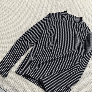 休闲打底衫 条纹内搭保暖时尚 女经典 秋冬德绒半高领打底衫