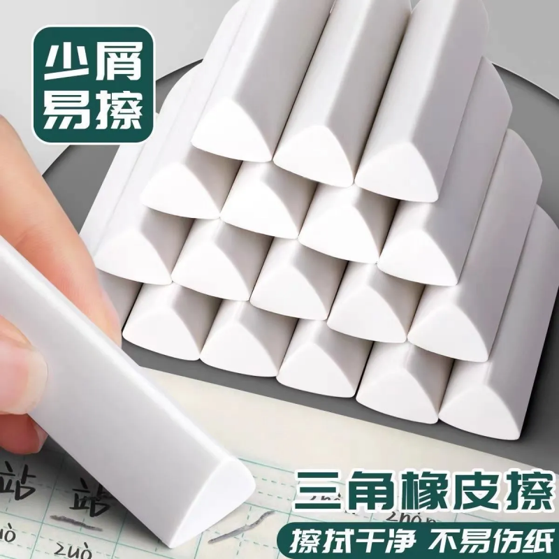 得力纽赛真集屑三角橡皮擦学生专用擦字成线擦拭成条超干净不留痕