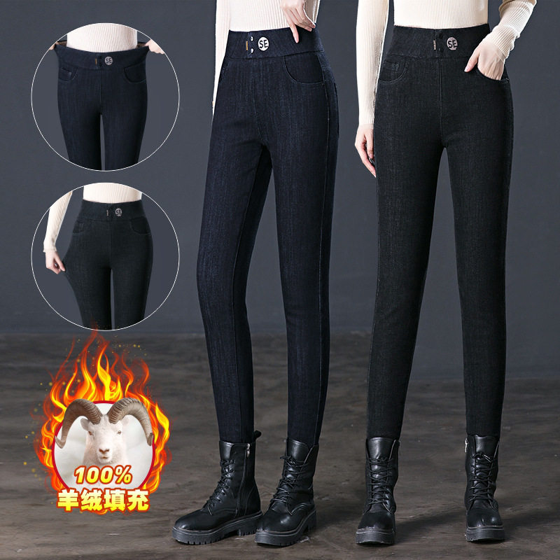 子高腰窄版 女秋冬裤 烟管裤 冬季 显瘦神裤 靴裤 加厚加绒直筒牛仔裤
