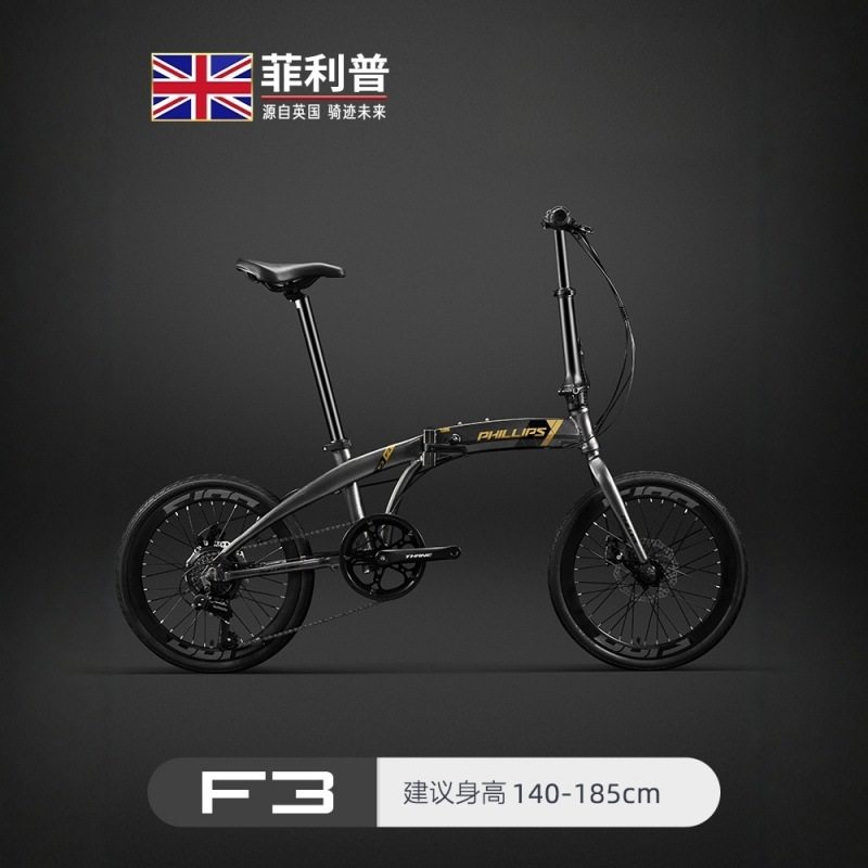 菲利普F3折叠自行车超轻便携成人学生通勤车变速碟刹小型单车20寸