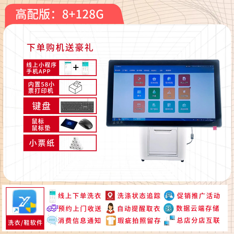 凯特琳UCC顺科灰姑娘干洗店收银电脑一体机洗鞋 机 洗衣店奢侈品护理客户会员管理系统软件手机APP触摸屏收款