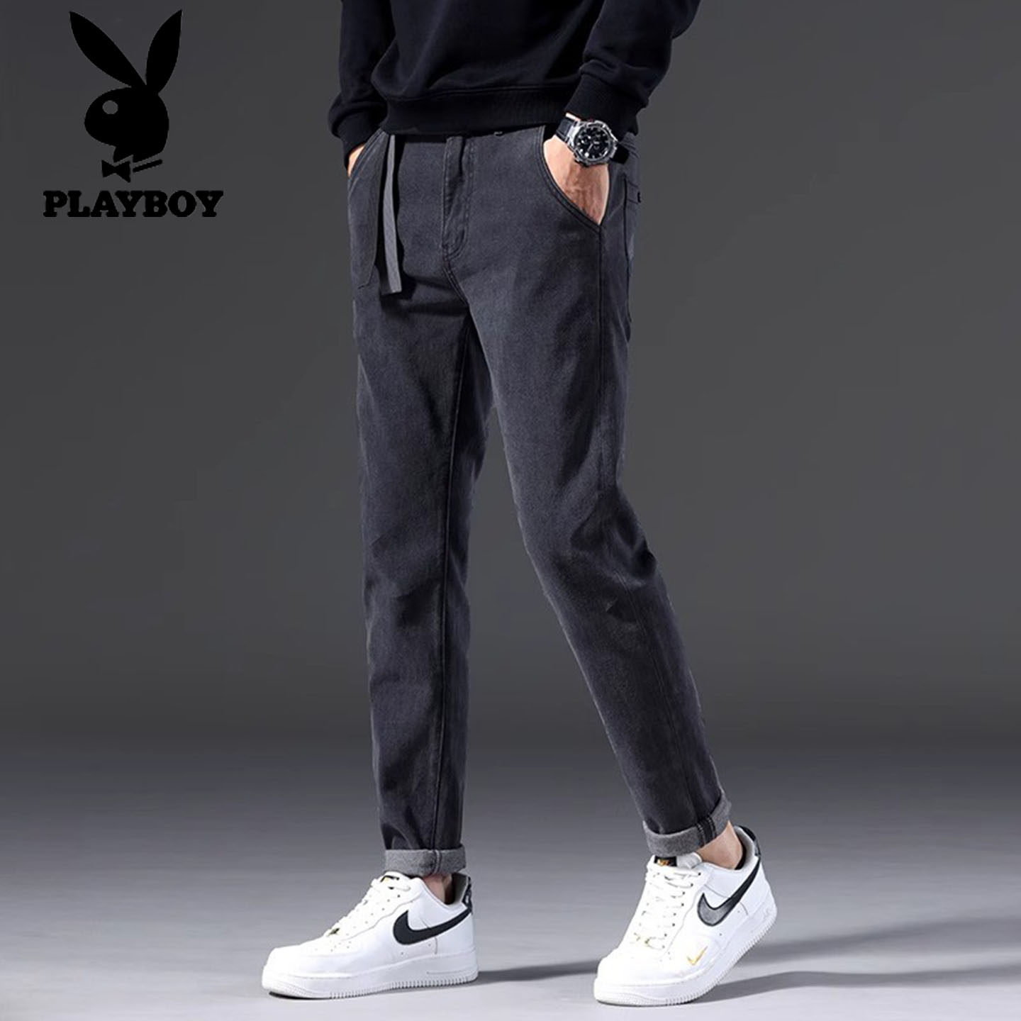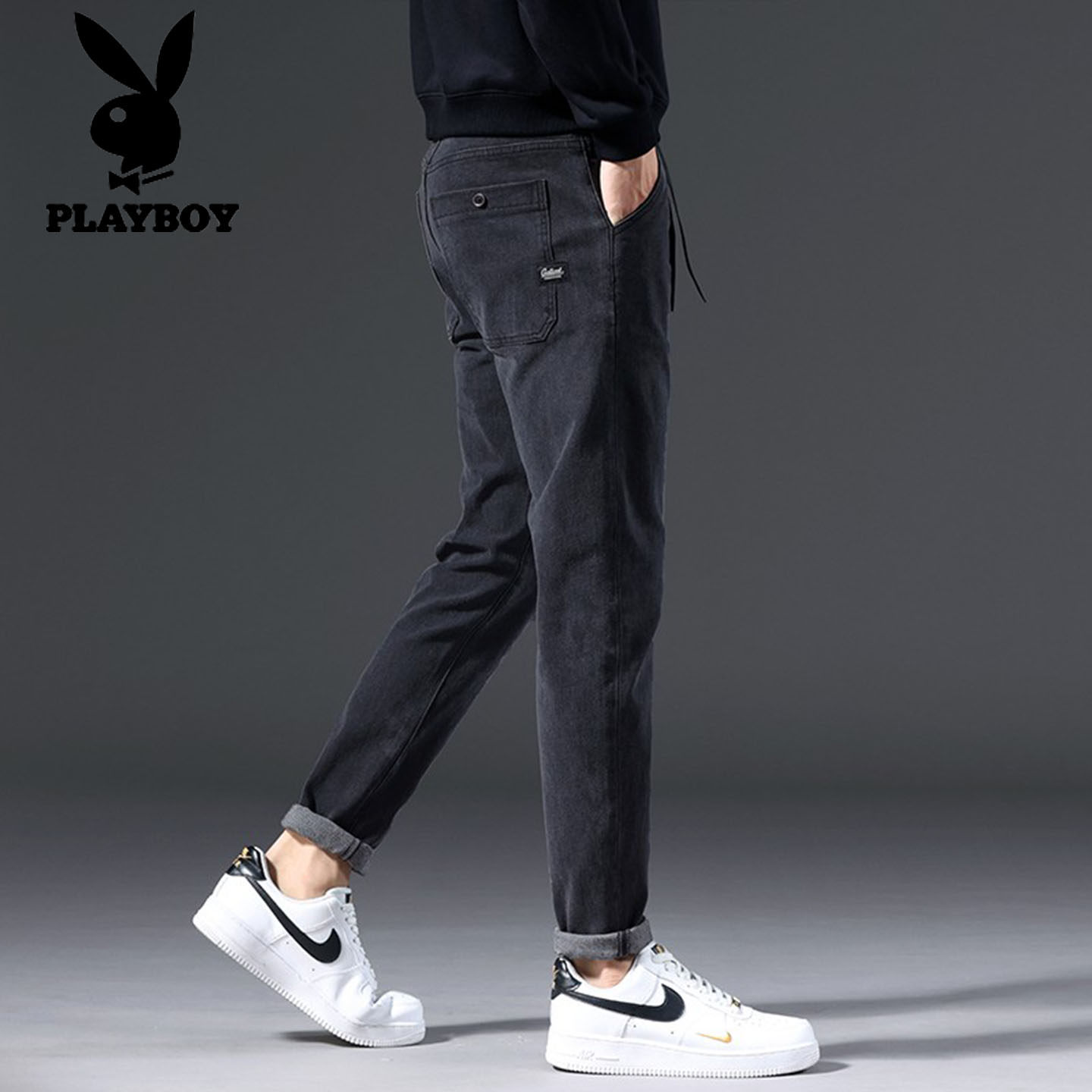 高端弹力潮流百搭加绒加厚长裤 花花公子男士 新款 小脚秋冬季 子 修身