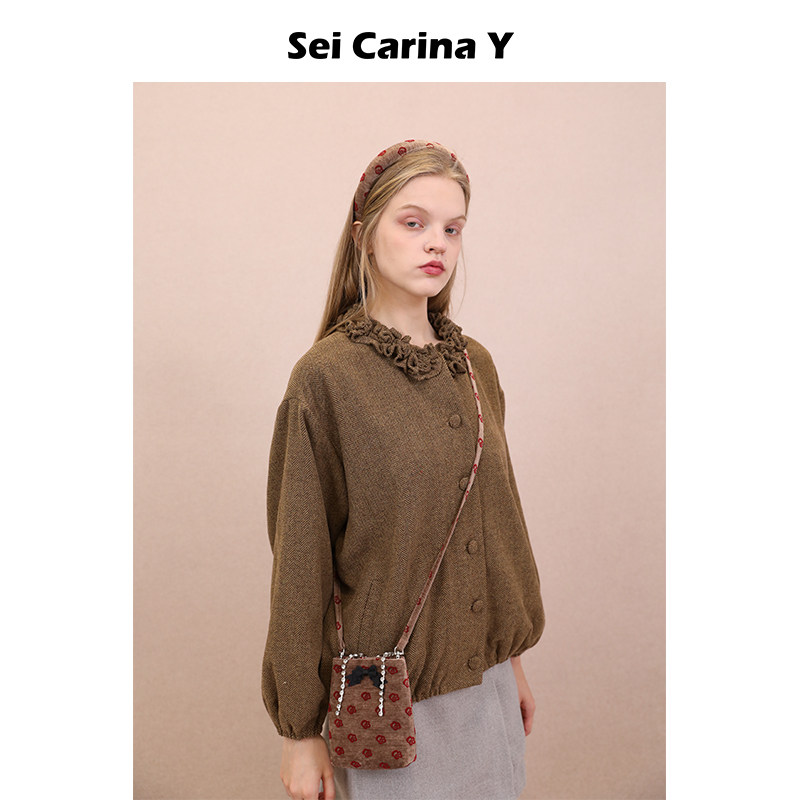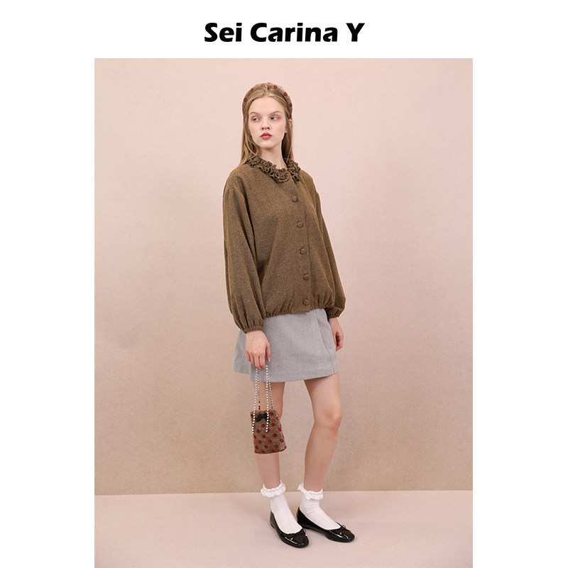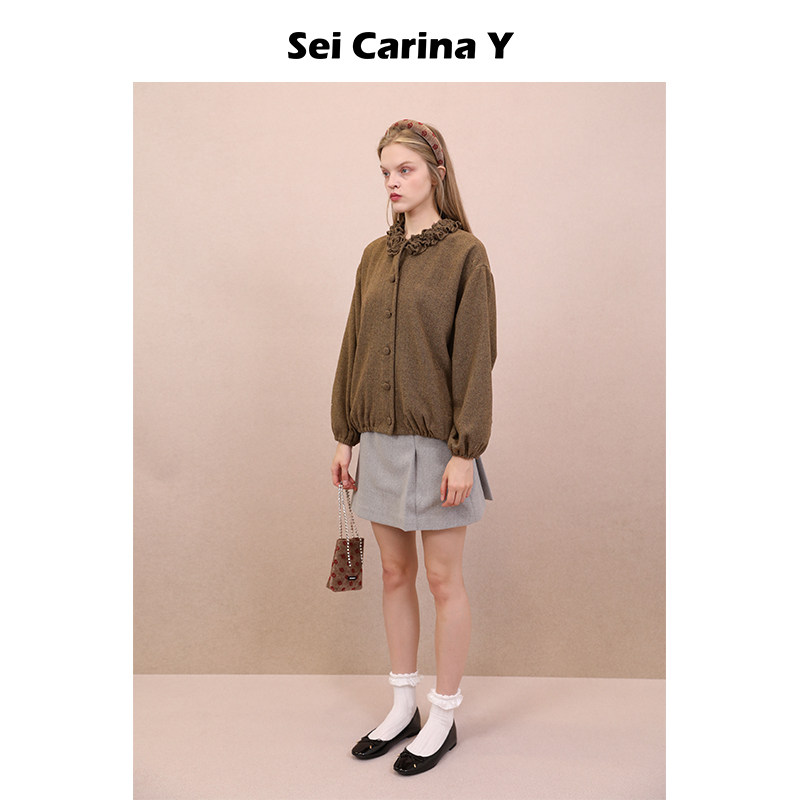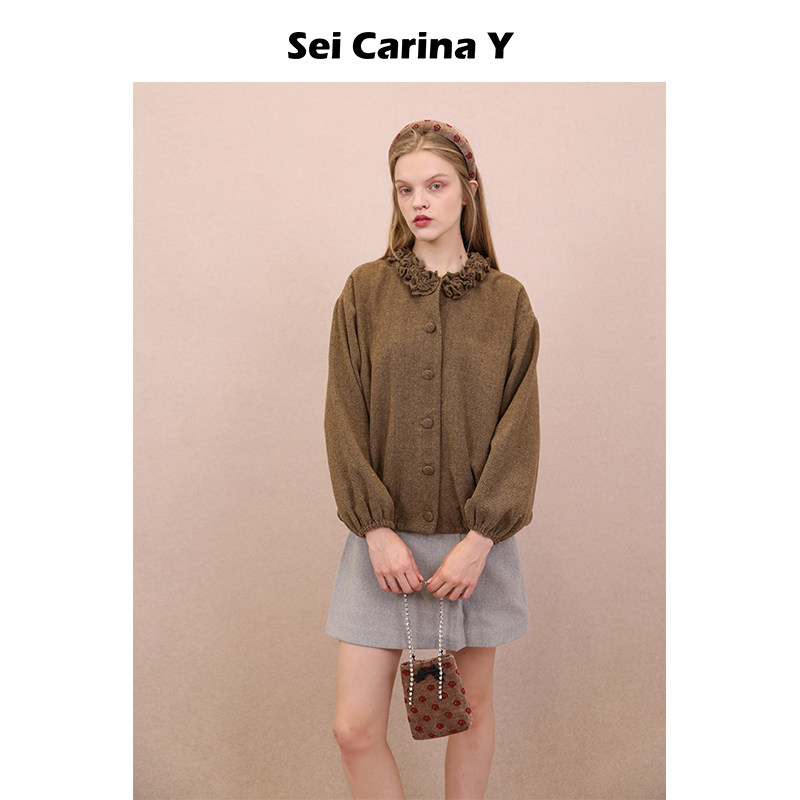 百搭宽松秋冬新款 Y花朵褶皱夹克上衣外套女甜美时尚 Carina Sei