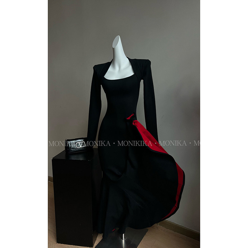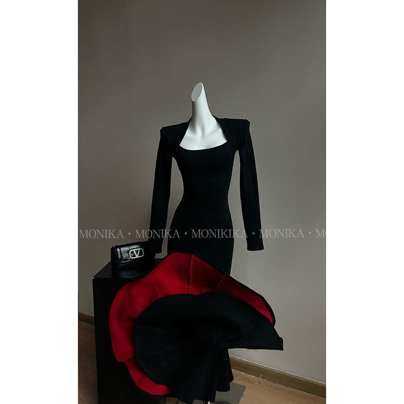 气质性感长裙25163 秋冬方领步步生莲鱼尾新款 红底步步生莲