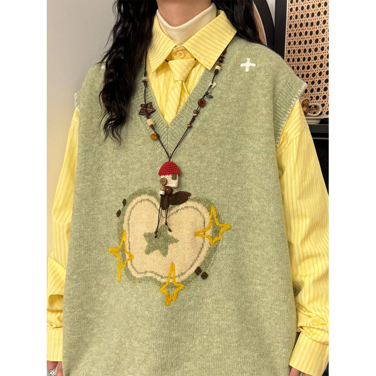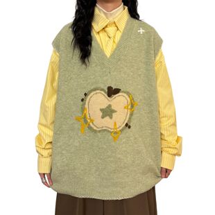复古软糯苹果提花V领针织衫 美式 马甲叠穿毛衣背心 秋冬季 胖MM大码