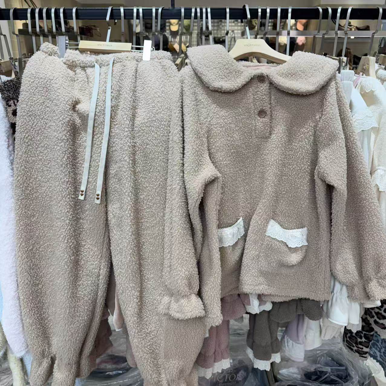 12.11韩国东大门victoria牛奶绒蝴蝶结吊带三件套家居服睡衣套装