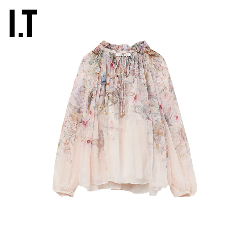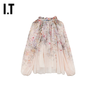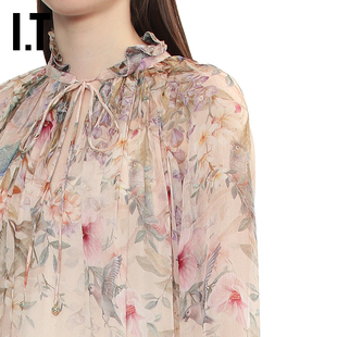 百搭气质上衣女 木耳领衬衫 仙草宝相提花缎真丝桑蚕丝白色法式 长袖