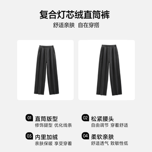 子N 高腰垂感宽松休闲加绒裤 班尼路S&K系列灯芯绒直筒裤 女秋冬新款