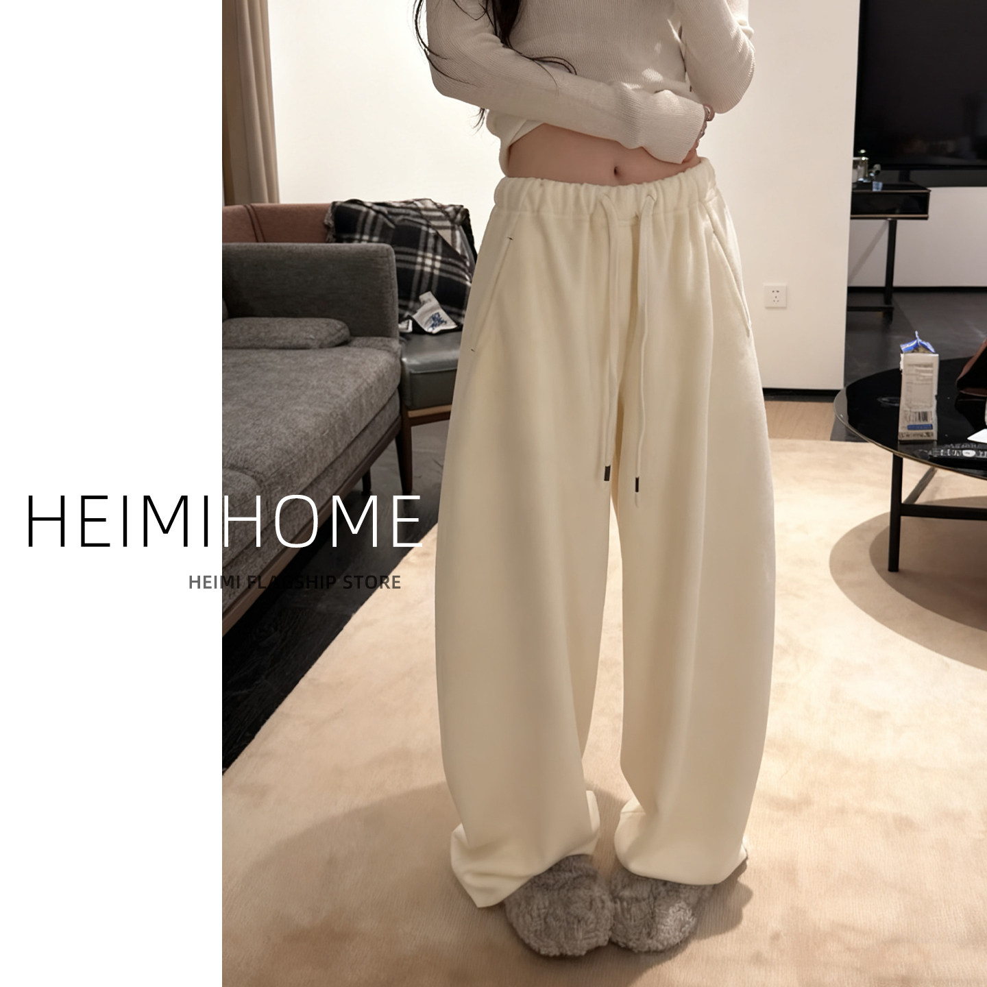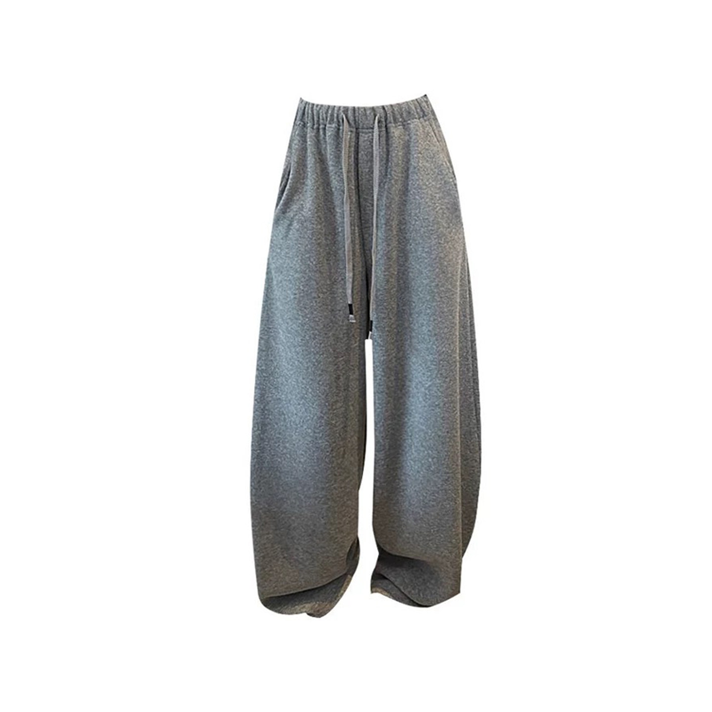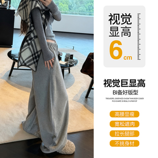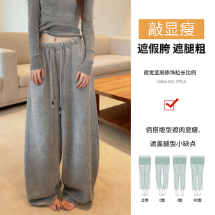 休闲羊绒卫裤 灰色加绒弯刀阔腿裤 女秋冬高腰慵懒感抽绳糯米运动裤