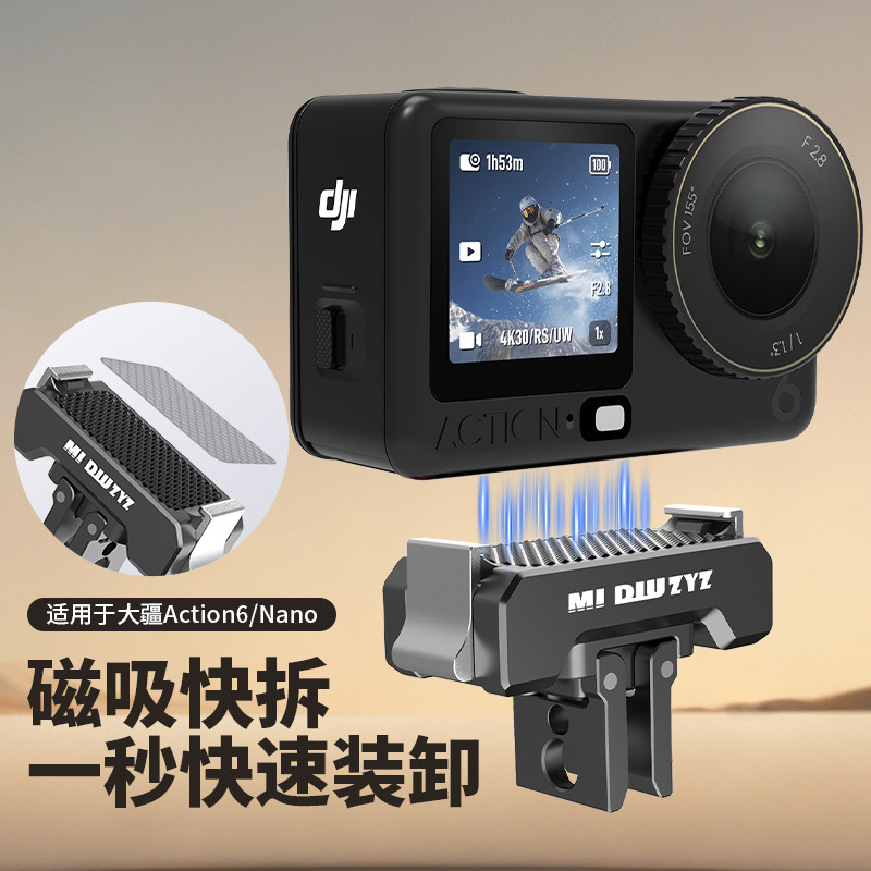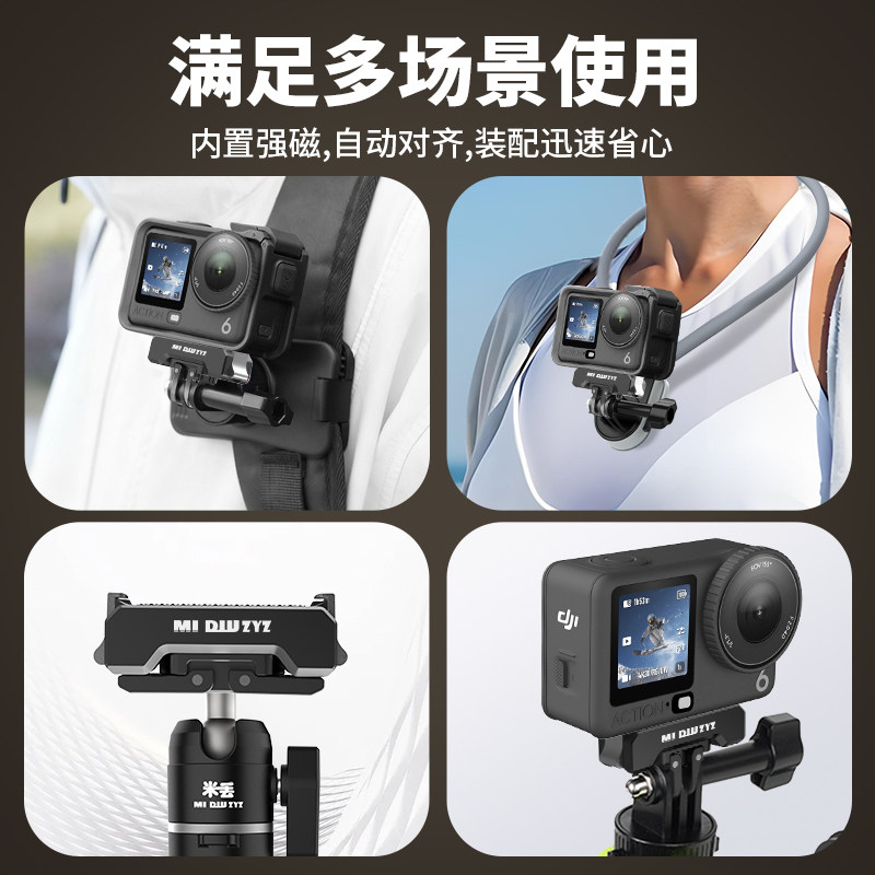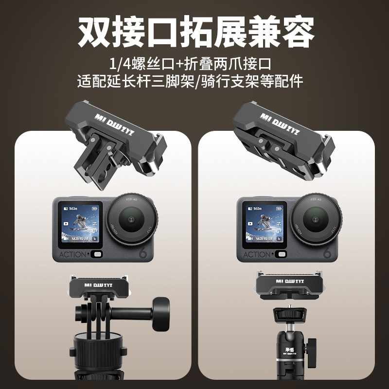 配件折叠1 米丢适用大疆action6 3快装 4转gopro接口拓展骑行支架 nano可旋转金属磁吸快拆底座action5pro