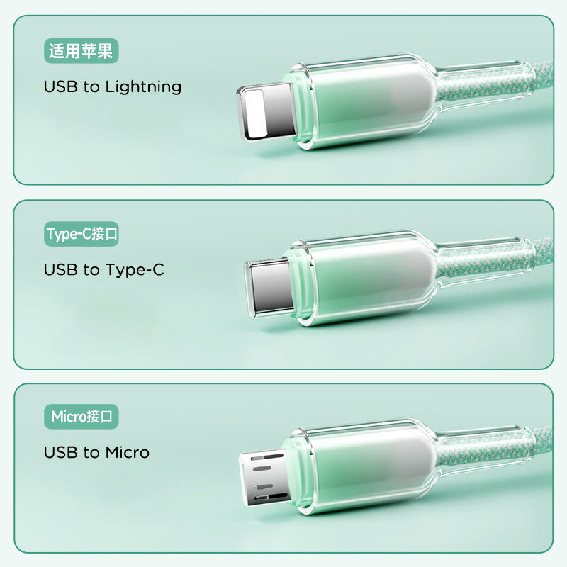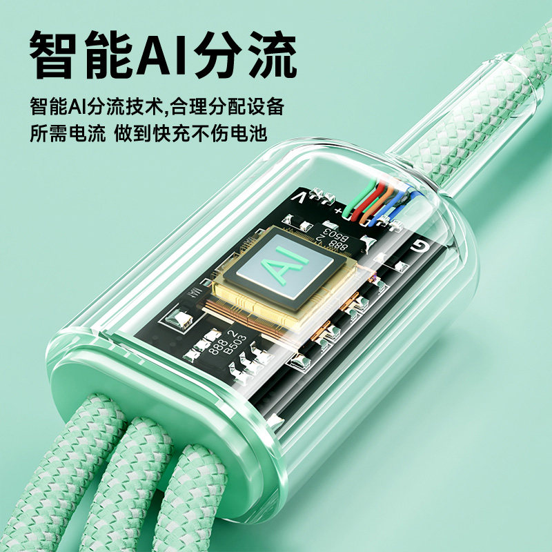 渐变三合一手机数据线240W超级闪充适用苹果华为VIVO小米OPPO荣耀车载通用充电器线一拖三多头多功能加长2米