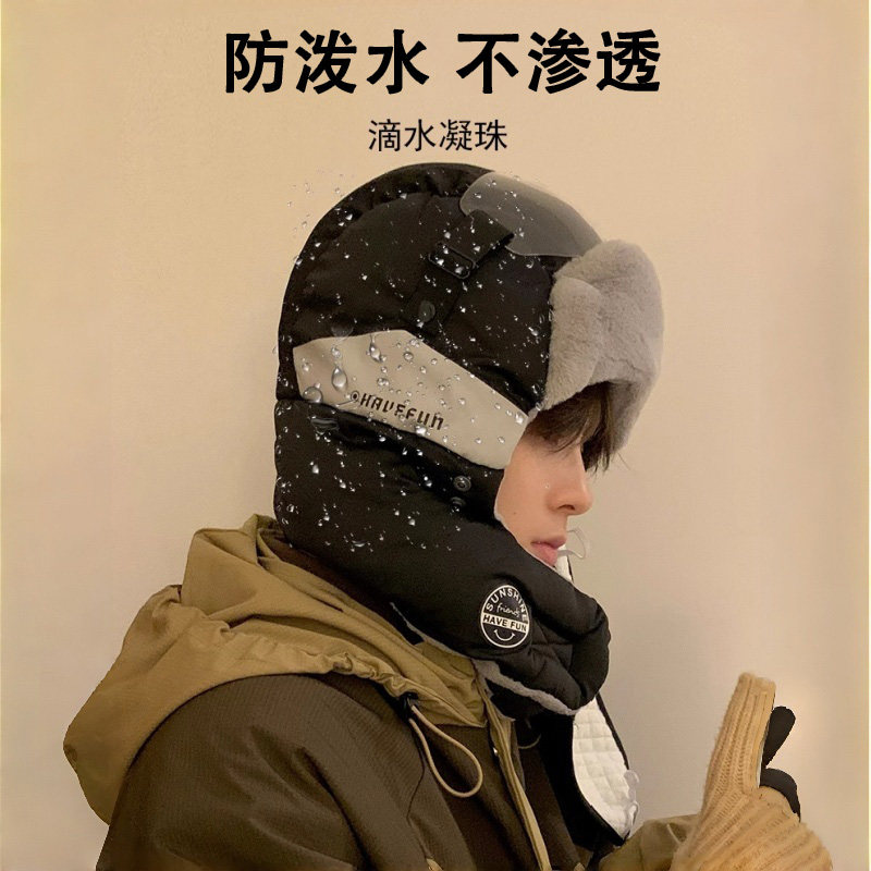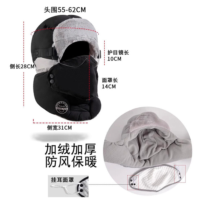 东北防寒面罩骑车电动车保暖防风棉 男款 帽子男冬天雷锋帽男士 冬季