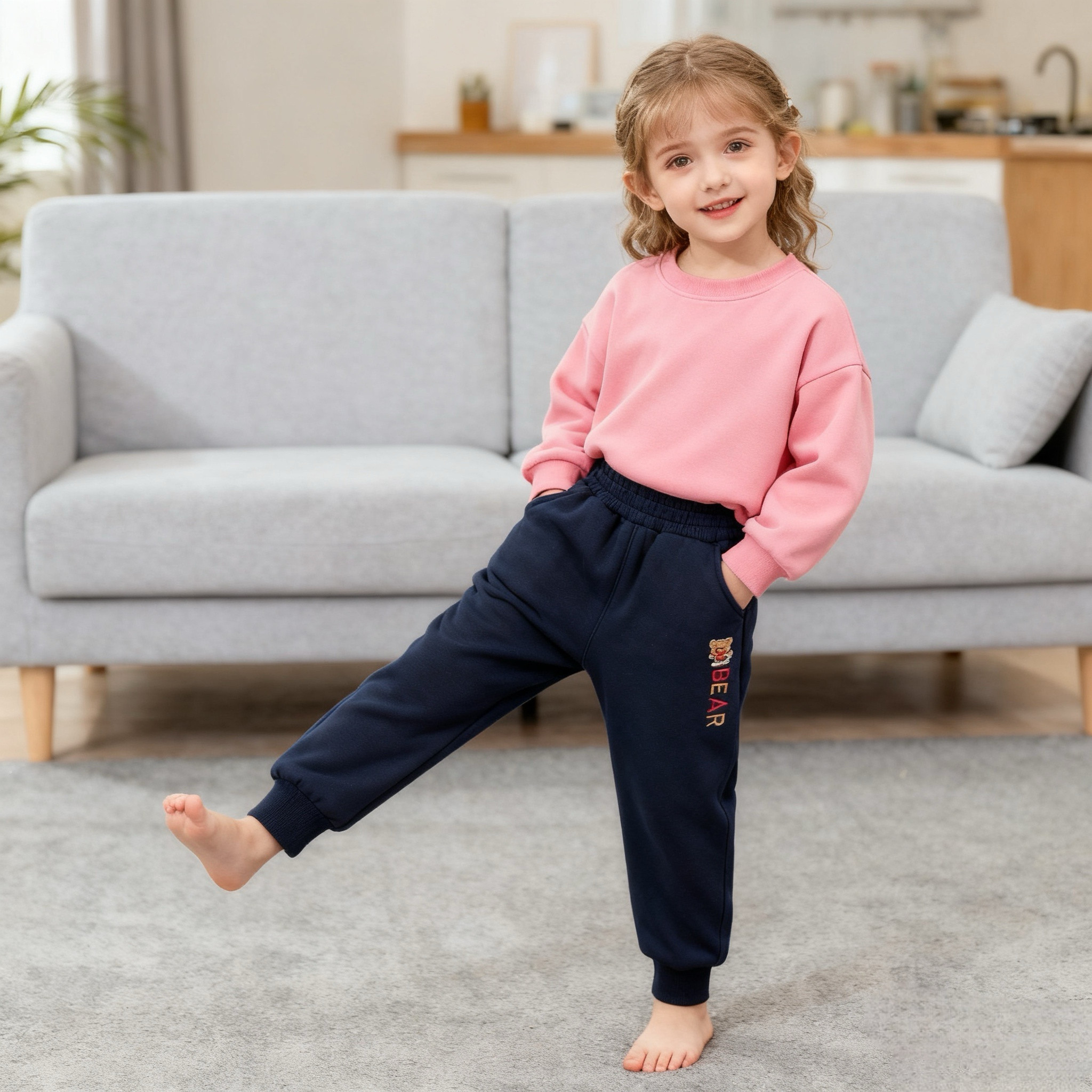 子女装 猫咪加绒加厚休闲卫裤 秋冬季 新款 大码 亚文化阔腿运动裤 美式